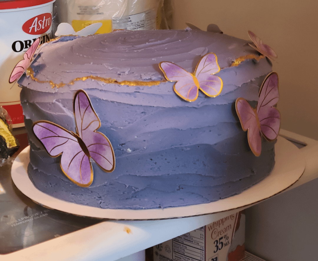 If anyone knows why my frosting always creates a dome, please let me know. I level my cakes and flip them so the smooth side is up. I smoothed out the frosting so much that the cake underneath began to show, but still, the top domes.
