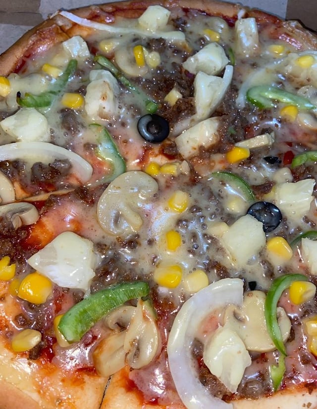 The corn is a misdemeanor and I’m personally fine with all the other toppings but you need at least double the cheese