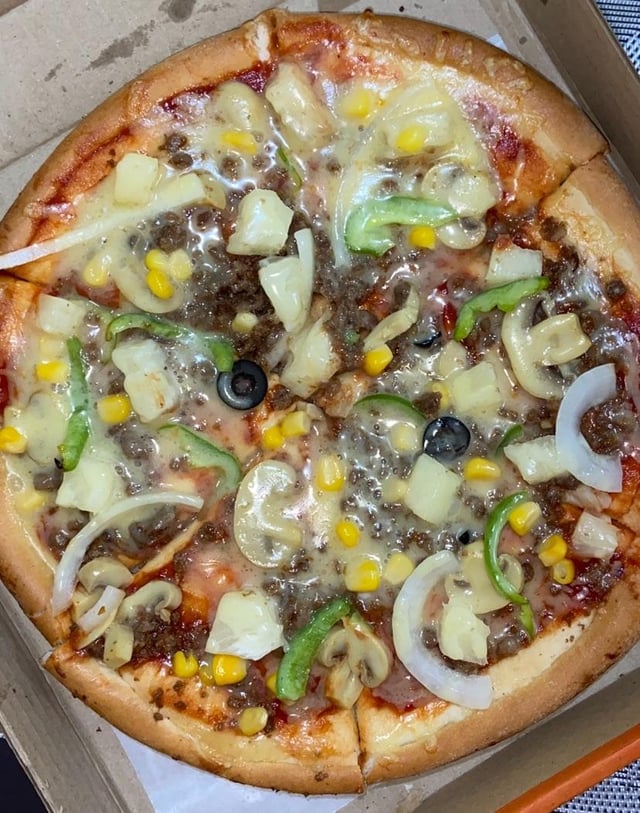 I’m fine with corn and pineapple really, but I typically don’t like this much cum on my pizza.