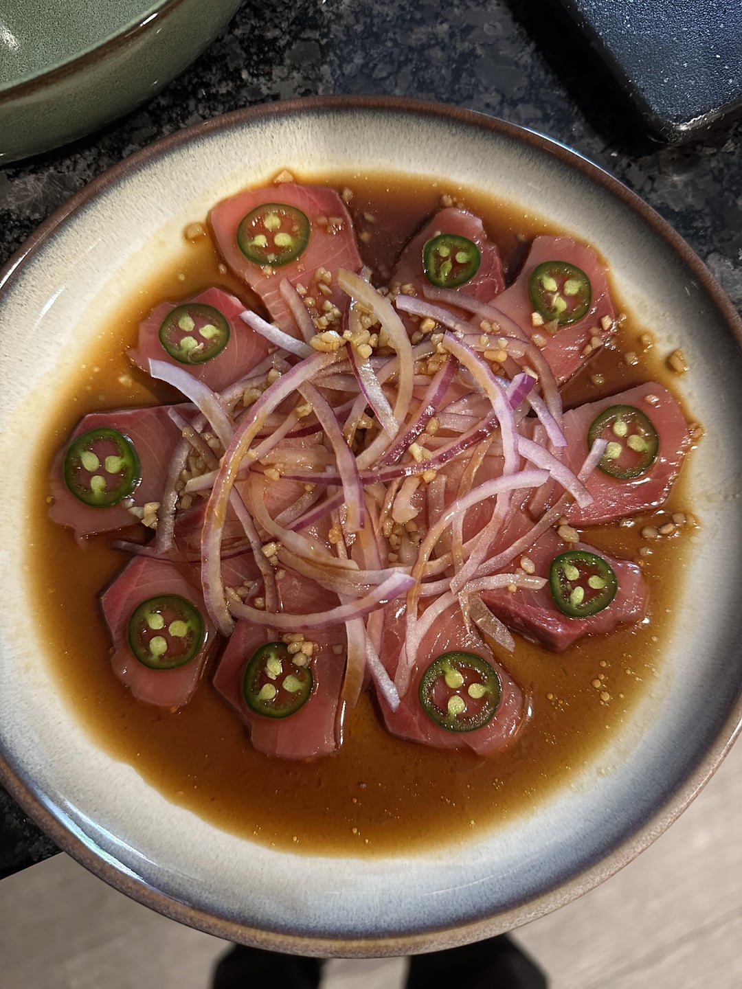Made this Hamachi Crudo inspired by a dish I had a few months ago at a restaurant (hamachi, serrano, red onion with a mix of soy sauce, ponzu, sesame oil, lemon juice, garlic). Also a salmon bowl just for funby ErgoExNihilo Write A CommentYou must be logged in to post a comment.