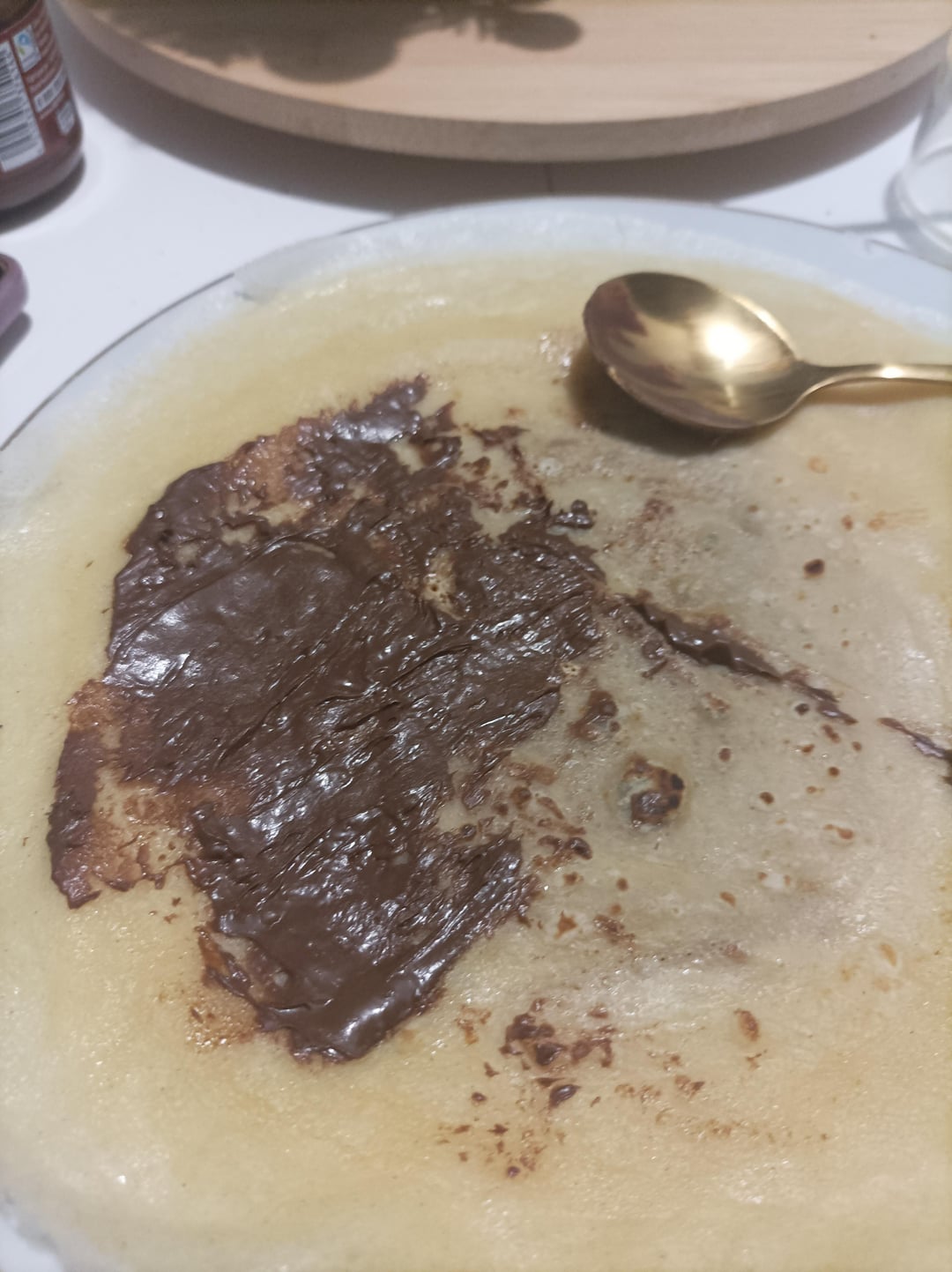 Most pics are to show depth, ate 3 crepes with small portion of Nutella, and 2.5 "muffins?" Last picture is just to show the size of one crepe, they were thin though. by Agreeable-Tip-2089 Write A CommentYou must be logged in to post a comment.