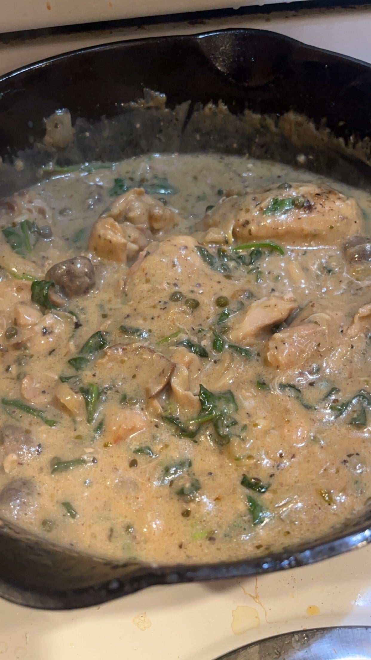 Chicken thighs with Alfredo sauce , spinach, onions, Bella’s and capers Penne nudes are fucking off in the pot to the rightby Used-Ask5805 Write A CommentYou must be logged in to post a comment.