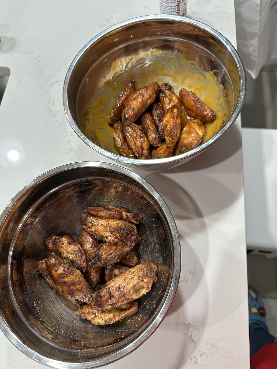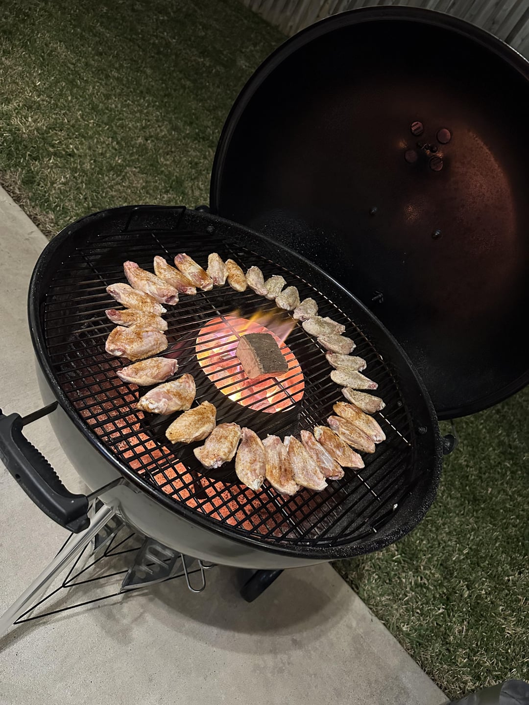 It looks like you can fit 8lbs of wings in there. I have the 22″ and can do around 4.5lb. I’ll have to look on the Facebook marketplace for one.