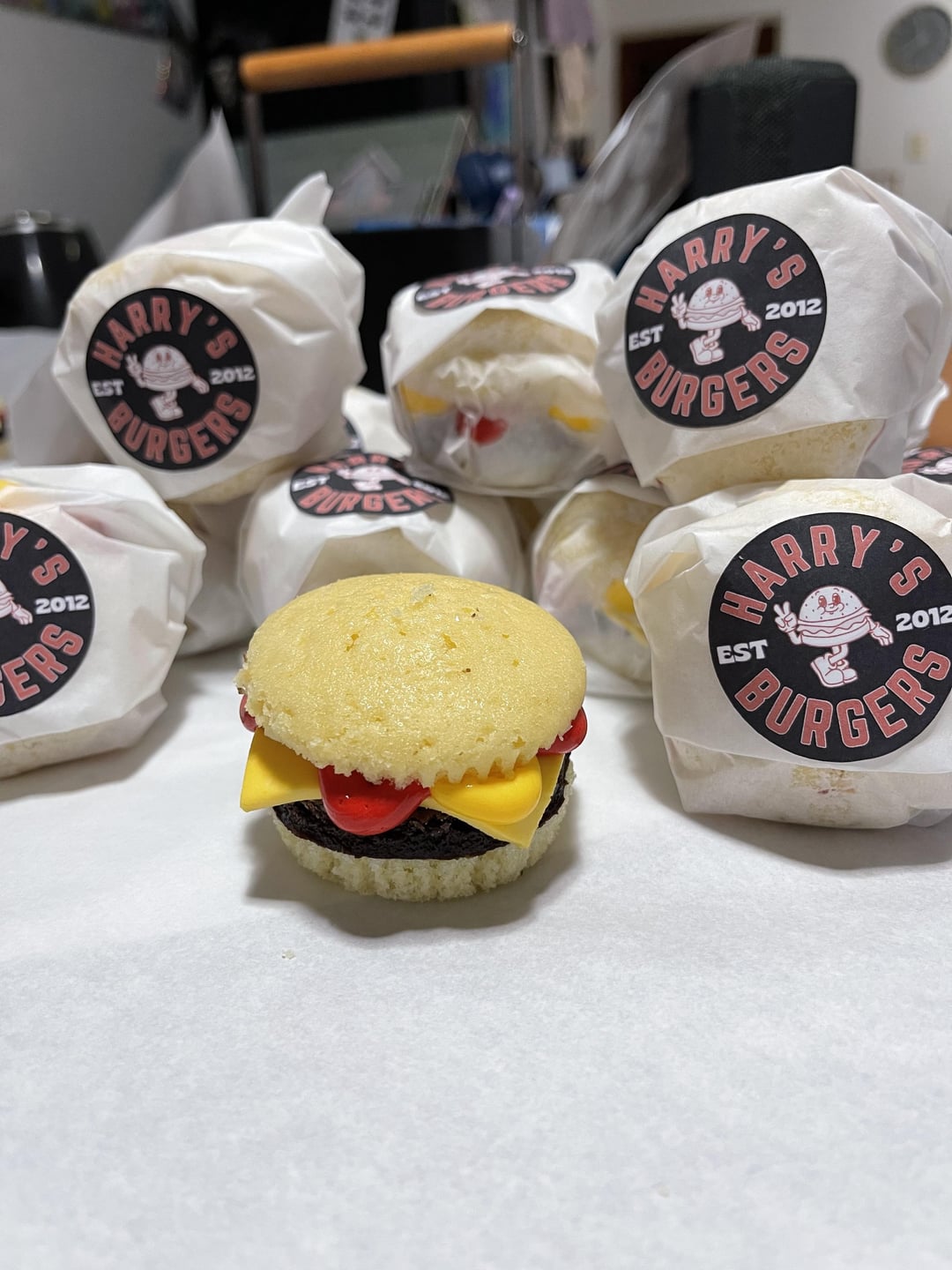 This is the second year in a row I’ve made mini burgers for my son to hand out at class. I prefer them over traditional cupcakes as once you wrap it up in the paper, they can be thrown into a bag/box and I don’t have to worry about icing going everywhere. I made the stickers using my cutting machine. So easy 🌈