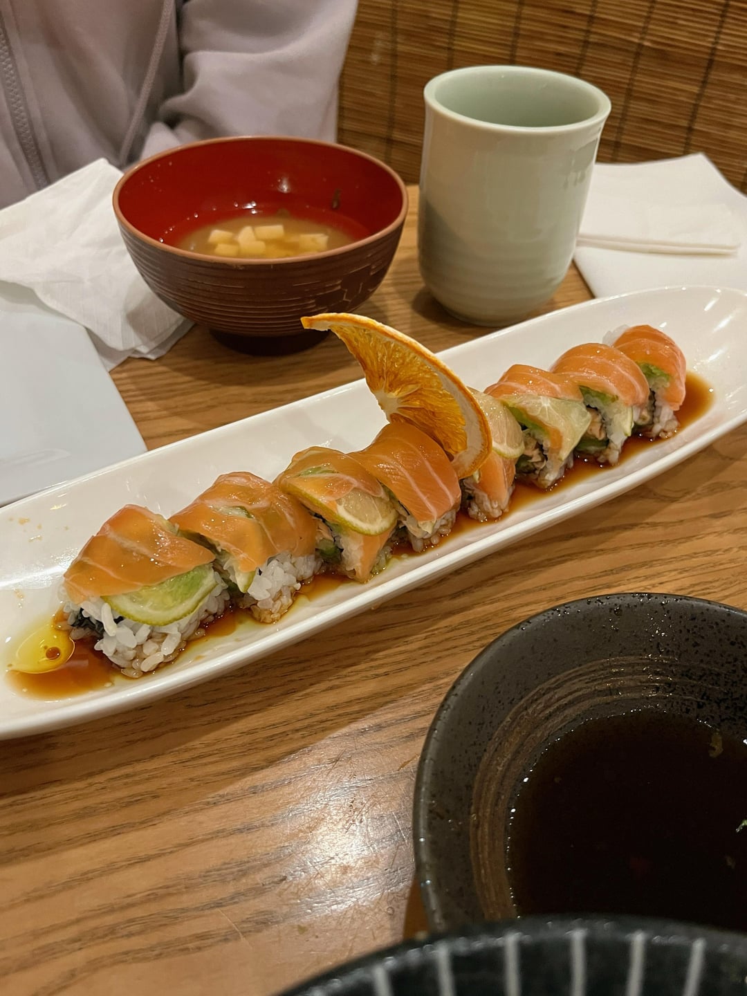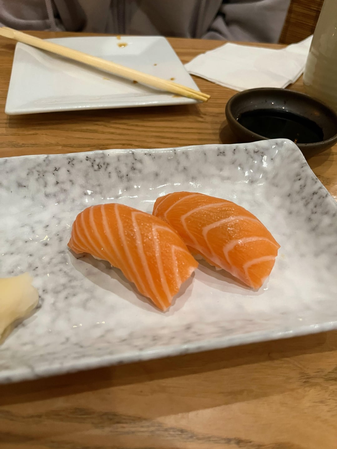 absolutely loved the chirashi bowl!! second pic is a roll w/ salmon tempura and avocado inside, and raw salmon on outside alongside some jalapeños and lime. third pic is some classic salmon toro nigiri. everything was soo delicious 🙂