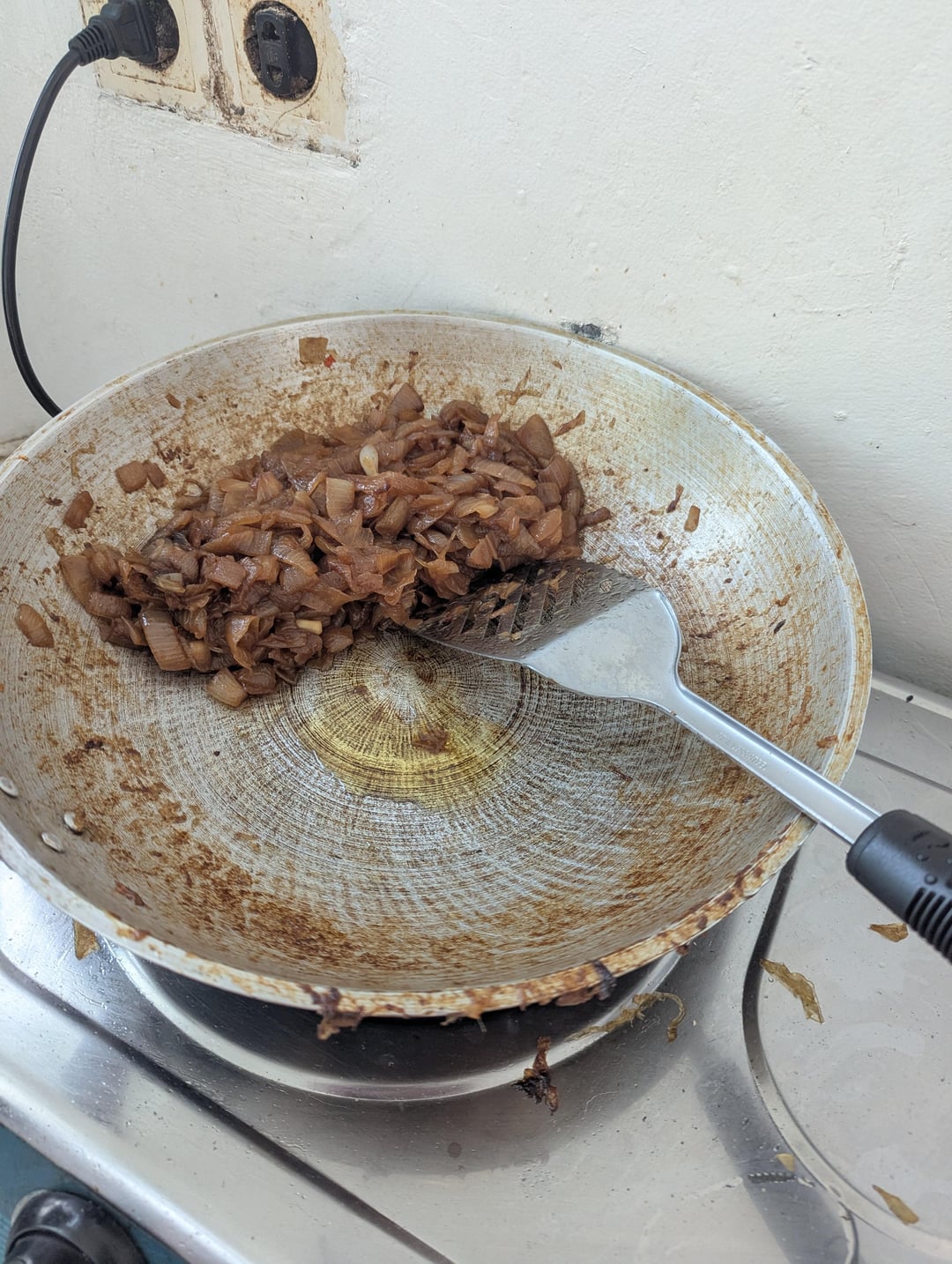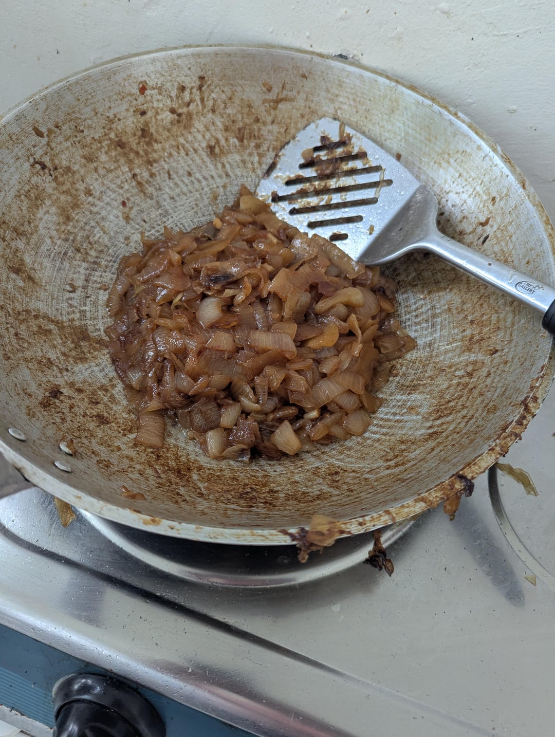 So I was just informed that the 24th is when we celebrate Christmas here so it's the 23rd and I'm cooking up some caramelized onions.