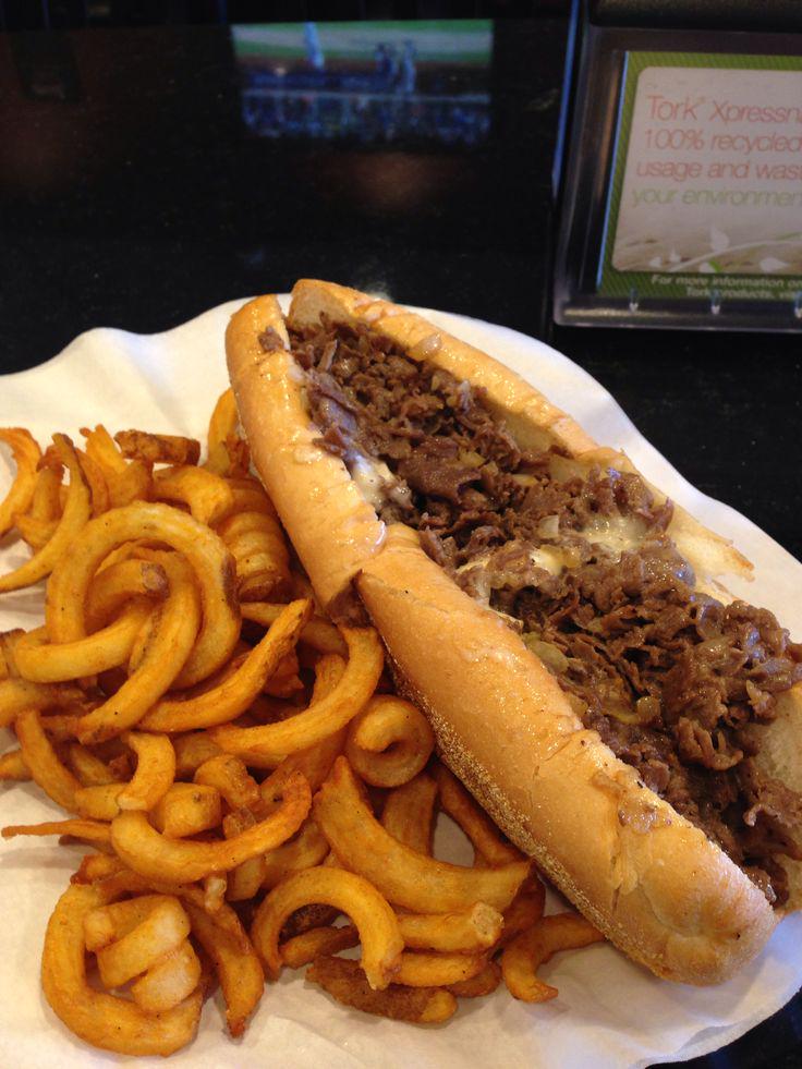 Cheesesteak and fried onions with American cheese. Yummy 😋