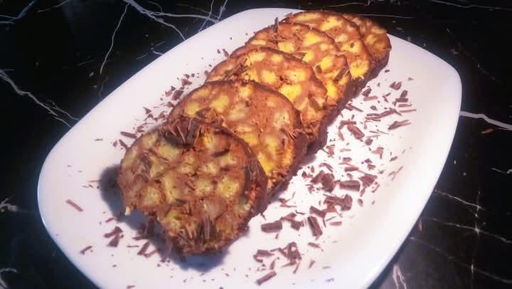 In this roll, the biscuit is in the cream, not the cream in the biscuit 😉 interesting appearance, simple preparation…try the taste the procedure and recipe is in the comment Have a good time 🙂