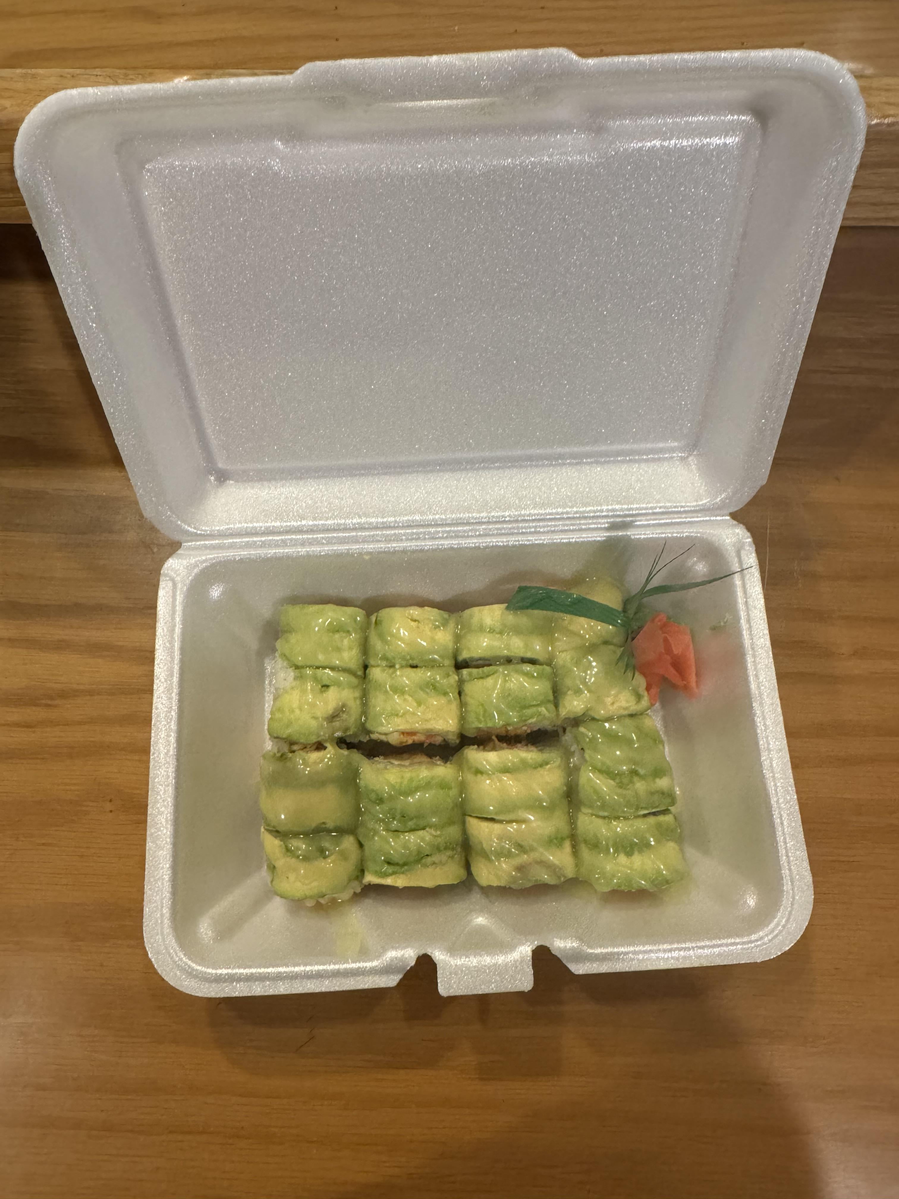 My go-to is shrimp tempura, cucumber and avocado (top or inside as long as it’s there) for $7.25/roll. Honestly I need to get a grip there’s so many other rolls out there to try
