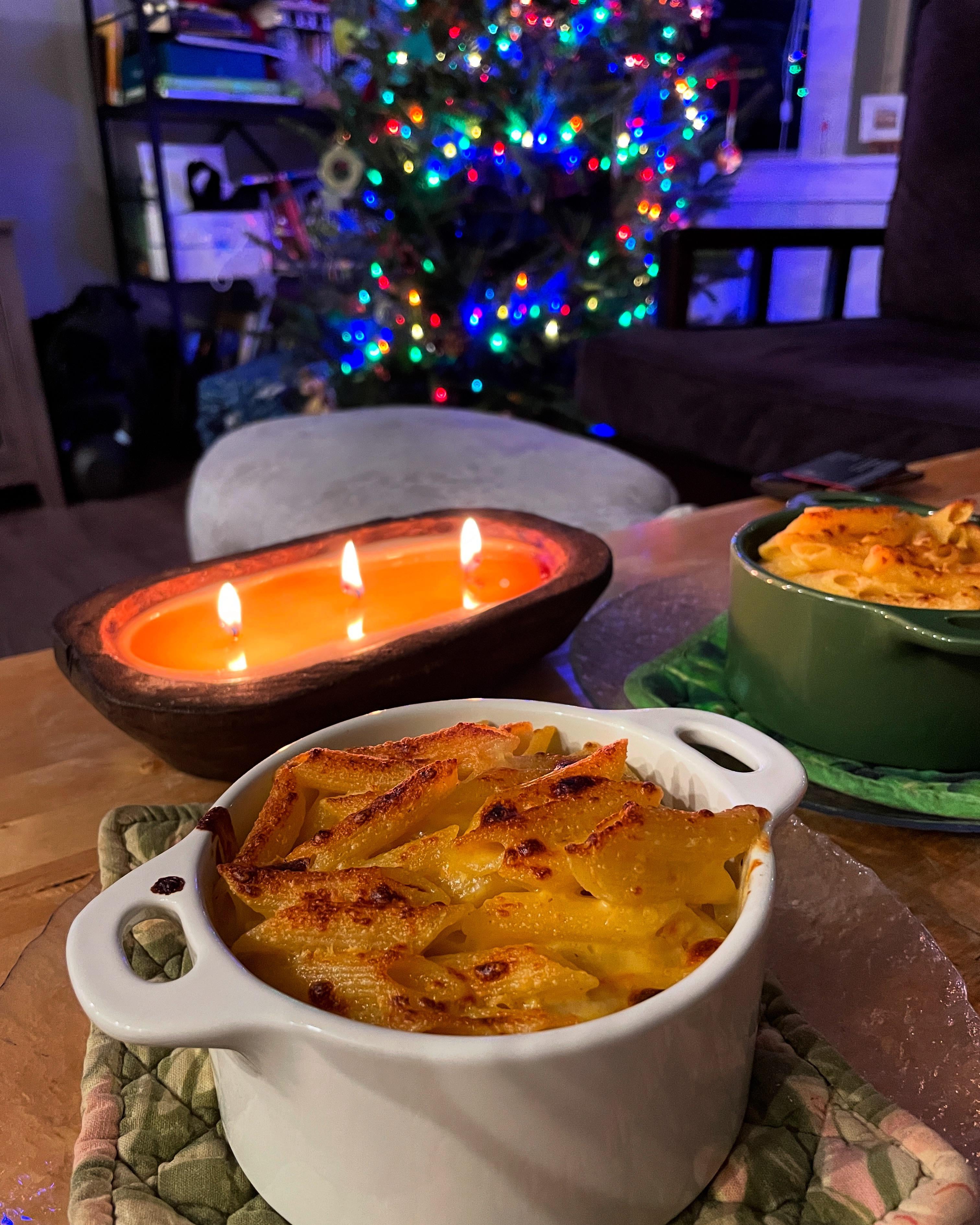 Melt half a pound of sharp cheddar, half a pound of gouda, half a pound of velveeta in heavy cream and pasta water. Add garlic powder, black pepper, and msg. When it’s all melted, add a pound of cooked pasta. Broil.by iia Write A CommentYou must be logged in to post a comment.