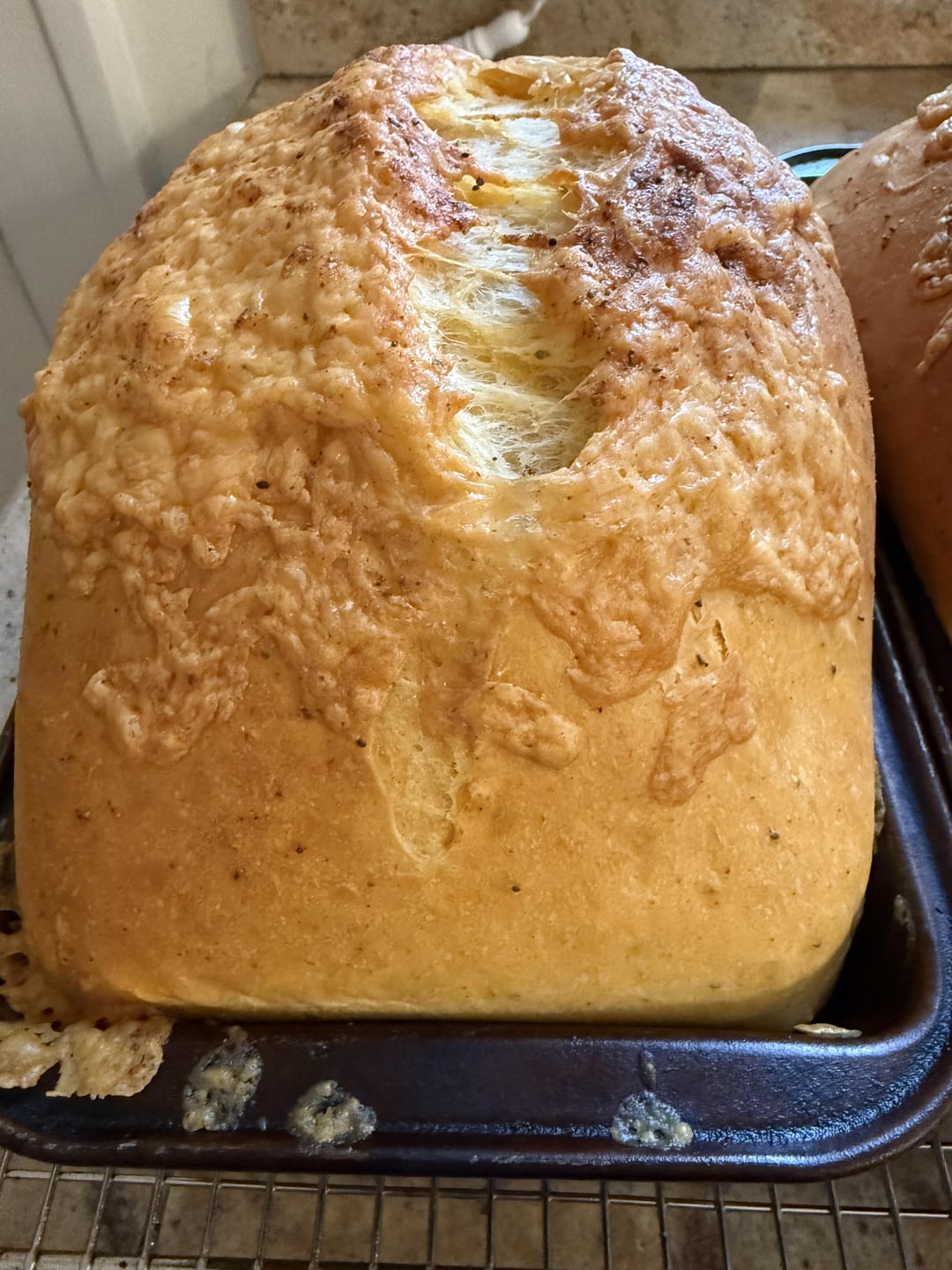 1250g bread flour 800g water 16 oz sharp cheddar (grate it yourself – get a good aged block if you can) 20g yeast 20g salt 40g old bay