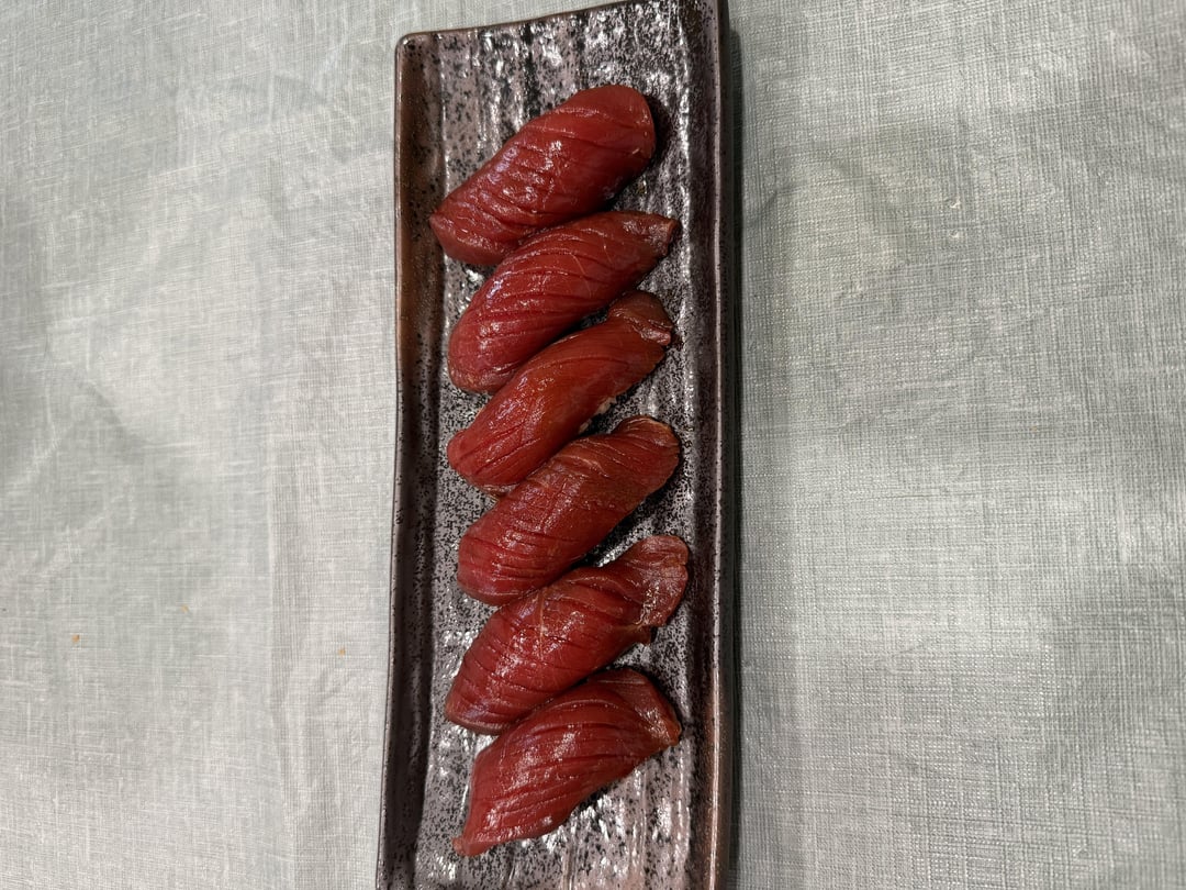 Here’s a side profile and a Birds Eye view of the nigiri I made. Need to work on a lot of things still but some feedback would be great! Fish weight for each piece was about 18-20g, rice was 10-11g. About 12 seconds for each piece.