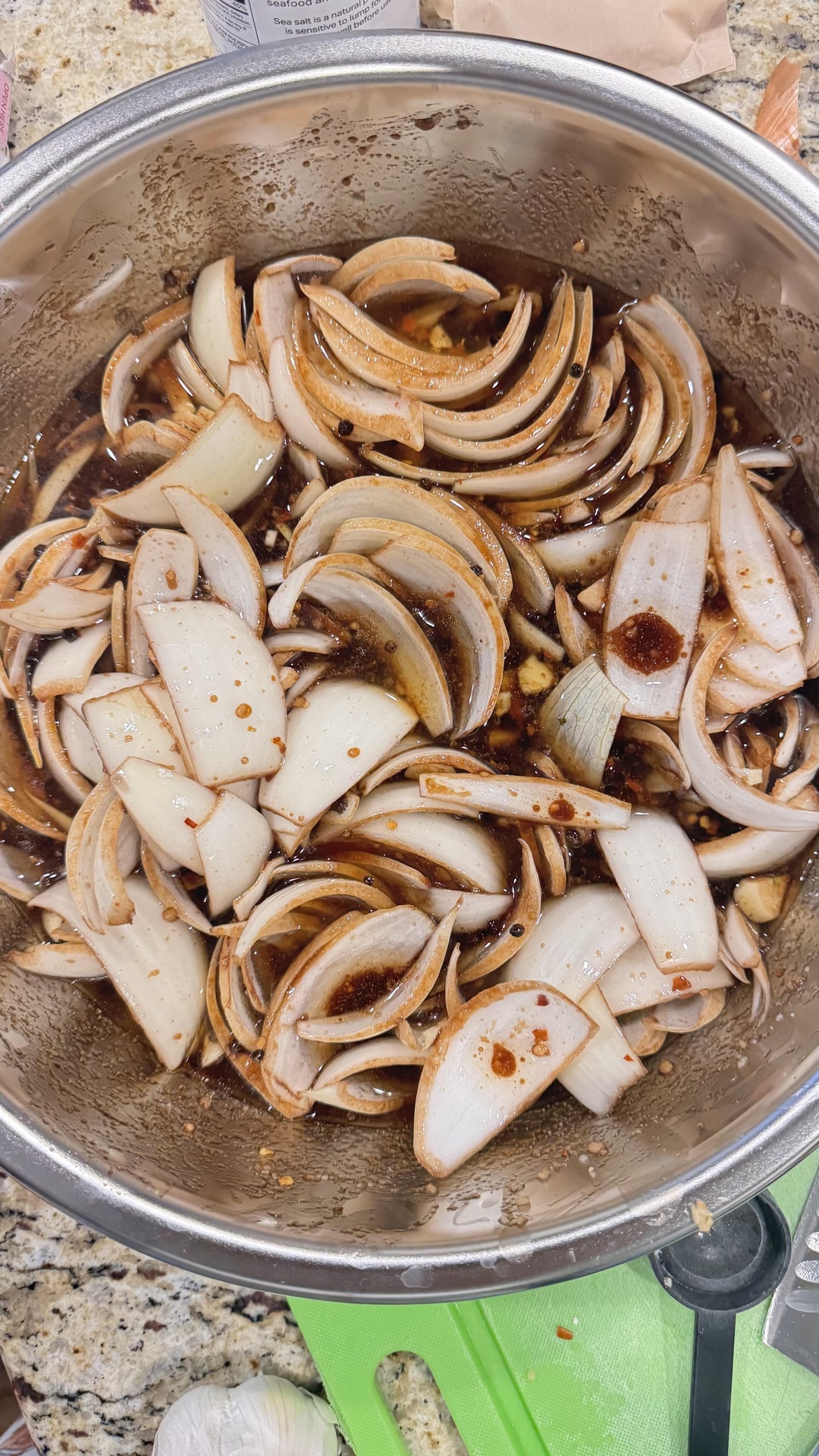 Balsamic vinegar, olive oil, onion, garlic ++ marinade for 2.5 days and vacuum sealed