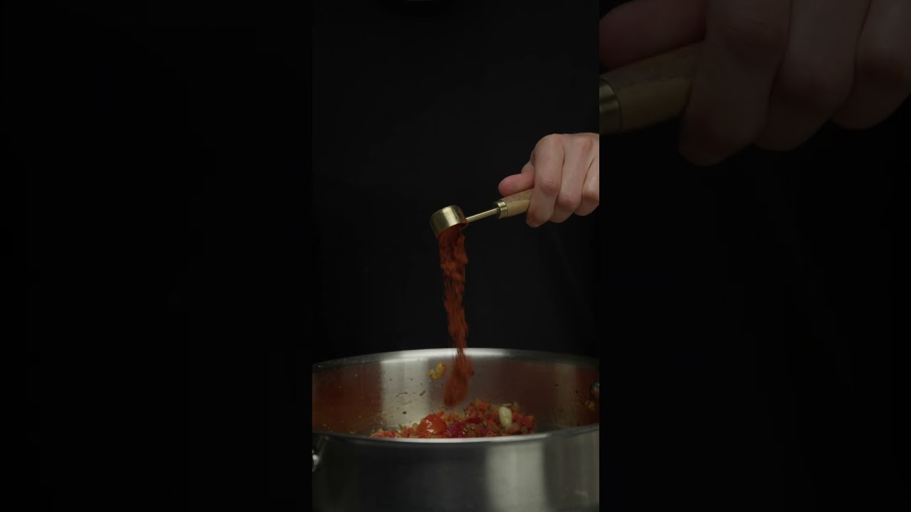 1️⃣ Sauté onion, red pepper, garlic, basil stalks, sun-dried tomatoes, tomato puree, smoked paprika, and Italian herbs in the oil.