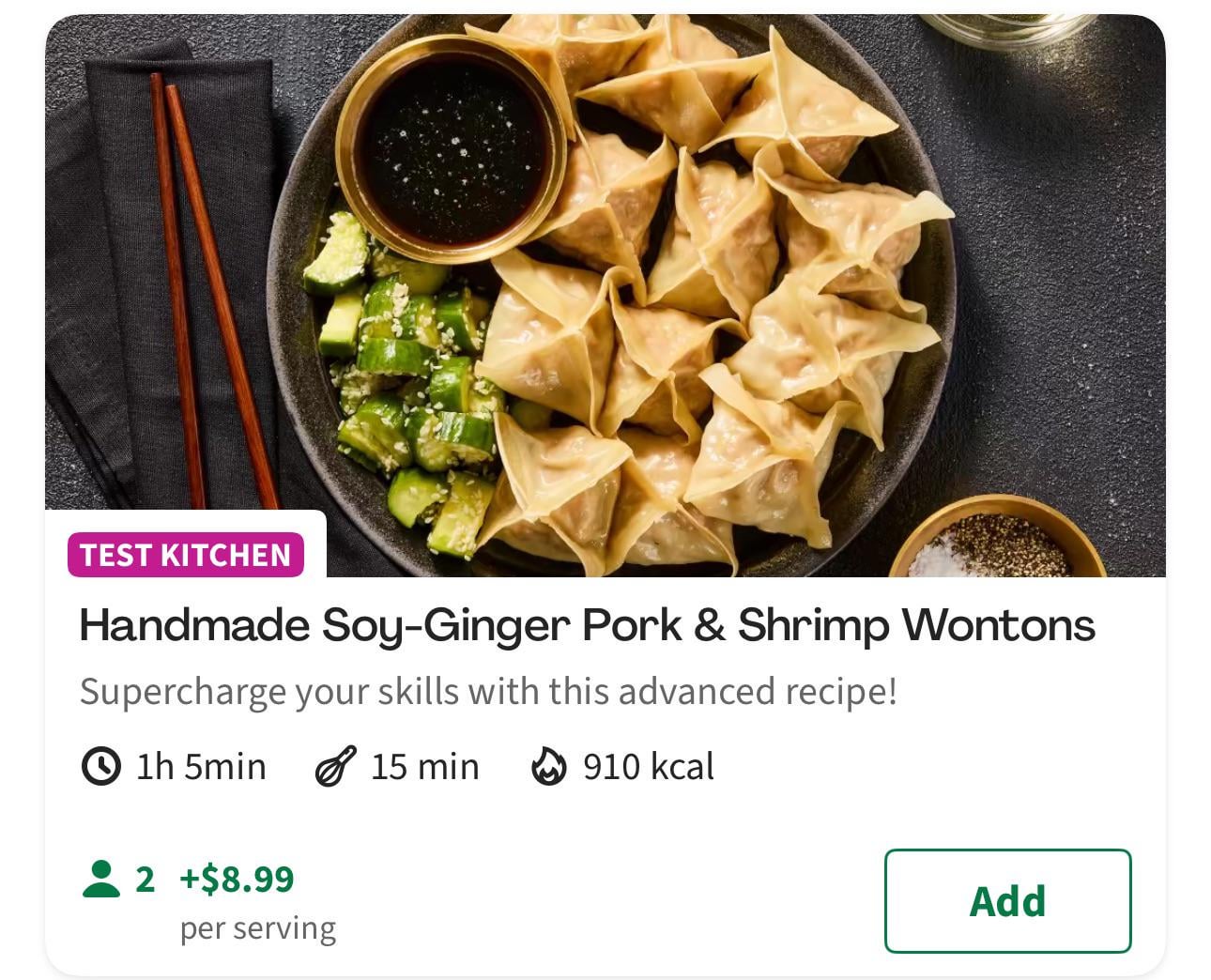 So, two hours to make dinner then? Pass. by SadFloppyPanda 9 Comments AvenueLane96 10 months ago Can you add Nervouspie 10 months ago Wontons so not take very long to make and it’s very fun actually you can make as many as you want and freeze them and have wonton soup. Boris_Bednyakov 10 months ago Ur math ain’t mathing KlatuuBarradaNicto 10 months ago Thar’s not what got my attention. It was the 9.00 upcharge… 😳 RomeoMcFlurry 10 months ago I’m wonton a faster meal to cook DeadoTheDegenerate 10 months ago Where tf u get 2hrs from? axnsworth 10 months ago 1 hour 20 minutes = 2 hours yessss i love math PuzzledBasket1162 10 months ago I dont see anyone putting a gun to your head. Why the announcement? Looks pretty good to me actually, i might consider them. Thanks for sharing kameraten 10 months ago Most of these people are commenting as if they’ve never made a HelloFresh meal beforeWrite A CommentYou must be logged in to post a comment.