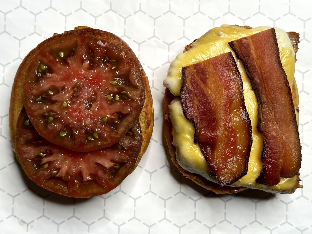 Pan fried leftover meatloaf made with home ground turkey and bacon mix, topped with Muenster and American cheese, a slice of bacon, heirloom tomato, and homemade burger sauce on buttered and toasted roll.by No_Pattern3088 3 Comments bakerLinda4q3 11 months ago No turkey loaf sammy for you! shroomenheimer 11 months ago That tomato looks incredible 🍅 captn-all-in 11 months ago Nicely done!!!Write A CommentYou must be logged in to post a comment.