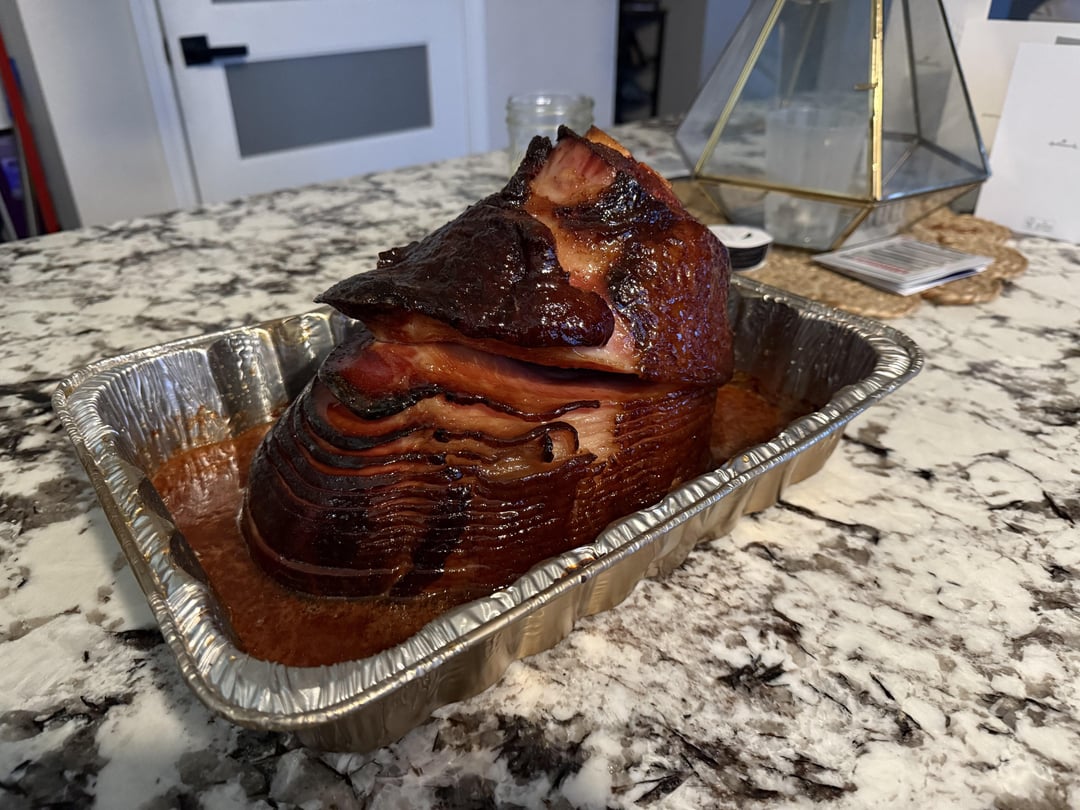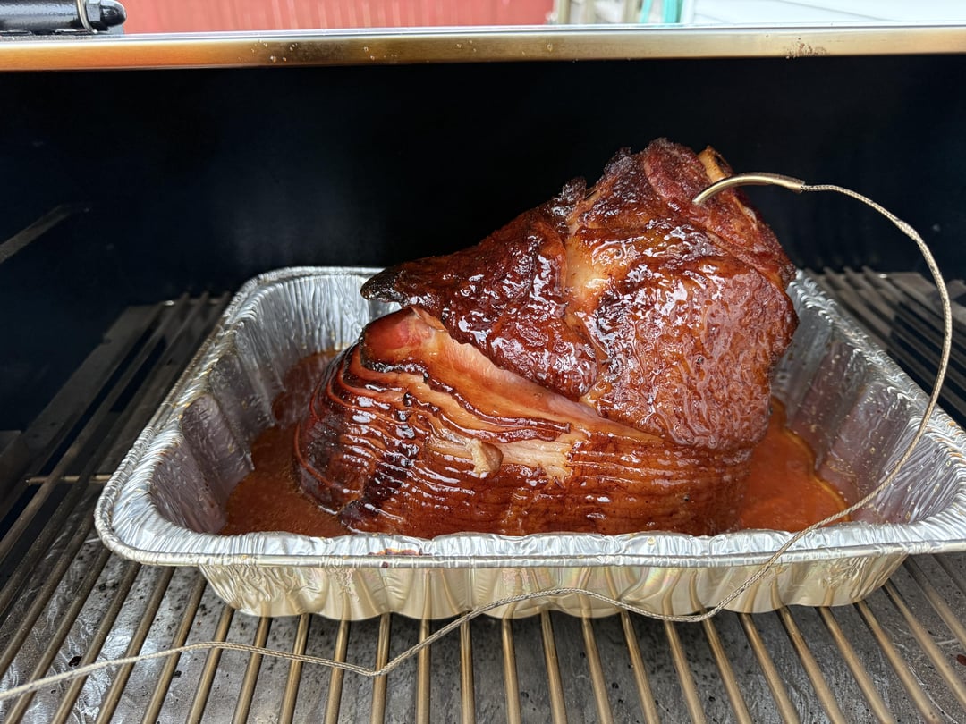Smoked a ham on my Silverback. 10.5lbs smoked at 225 till it reached 135. Rubbed with Honey Bacon BBQ by Meat Church and had water and apple juice in the pan while it cooked. Started glazing once it reached 115 with a honey glaze mix. Came out amazing!