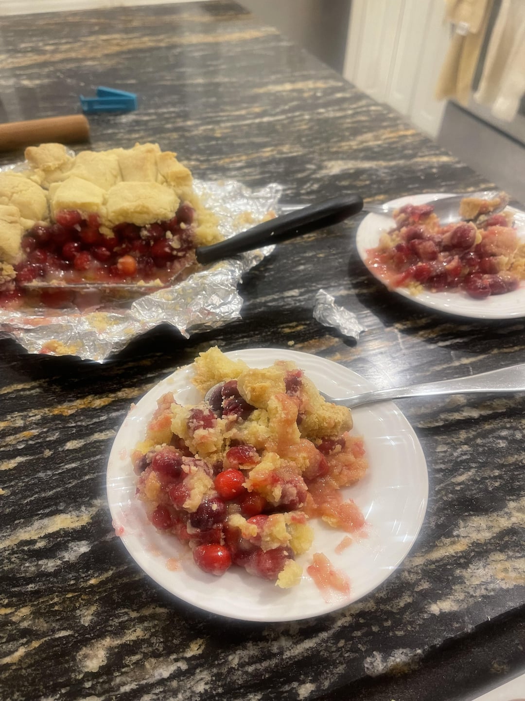Honestly for a first pie, a lattice crust and cranberry fillings? That’s a tall order but it looks great! Keep it up and you’ll have people asking for your pies all the time!