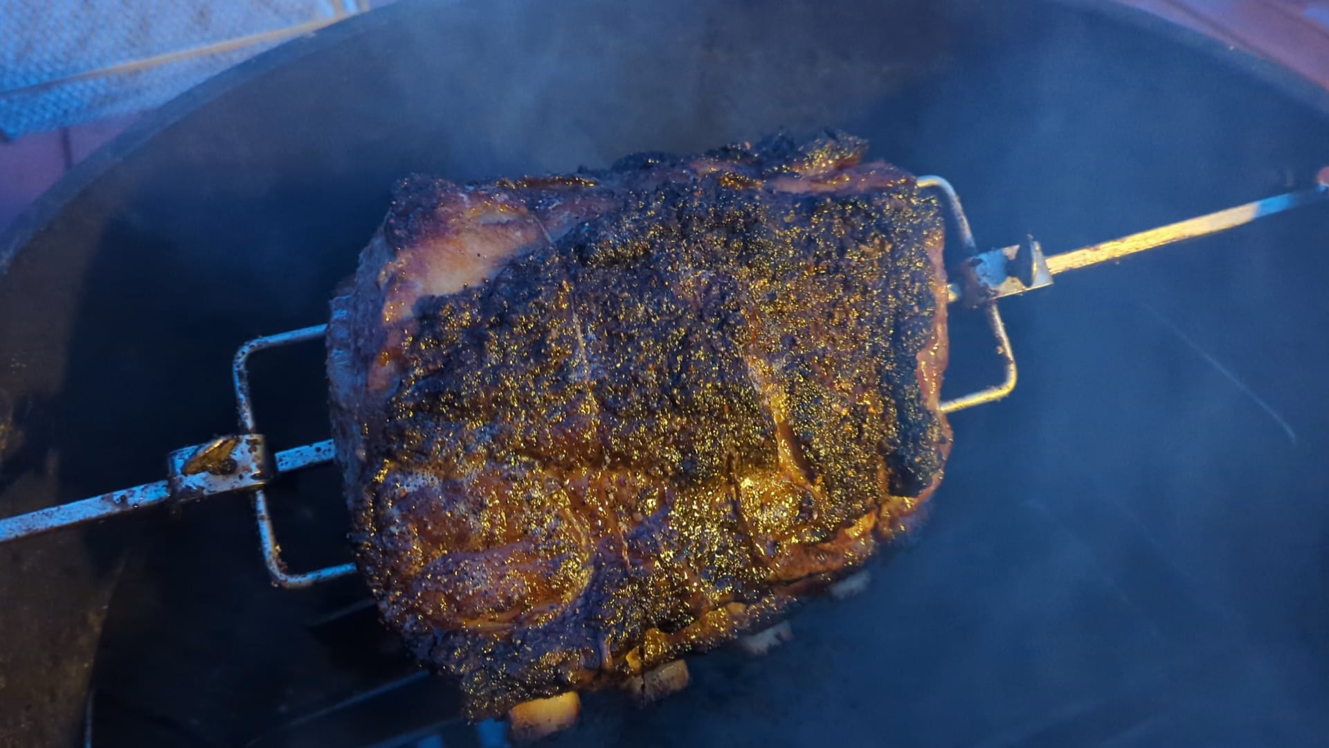 Prime rib on 22inch rotisserie, my my, tasty.