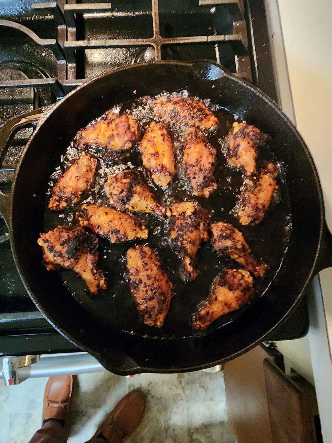 For the wings, I rubbed them in a generous amount of baking powder, charbroil seasoning, cracked black pepper, and just a touch of Tajin, coriander, and ginger.