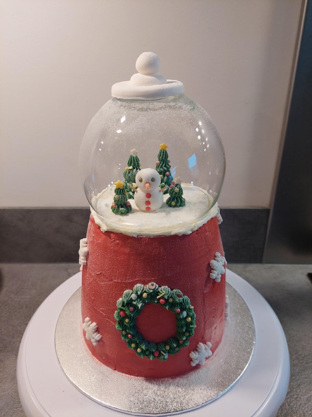 Amazing work. Nice you have credit. Adorable snowman and trees. What made the glitter and globe part. Perfect shape globe. Lovely wreath in it. Nice pic from front and back. Great colors.