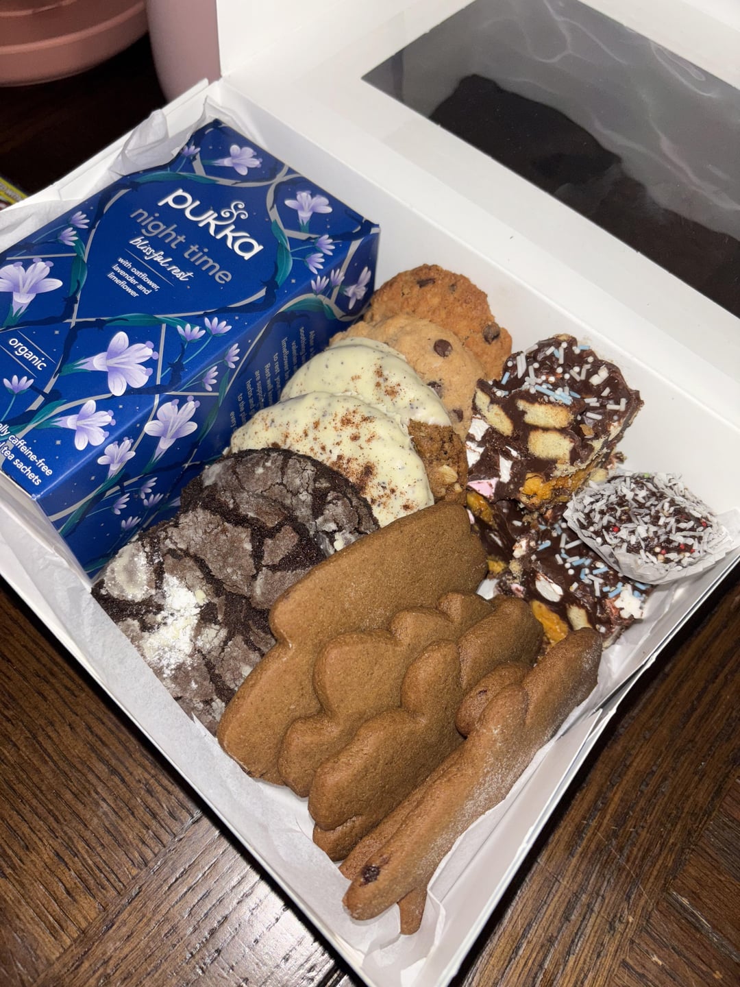 The cookies look fantastic and I looooove the idea of adding the box of tea to the box! I like to imagine your recipients will make it a nighttime ritual to wind down with tea and your cookies