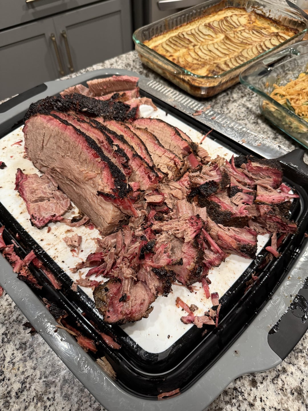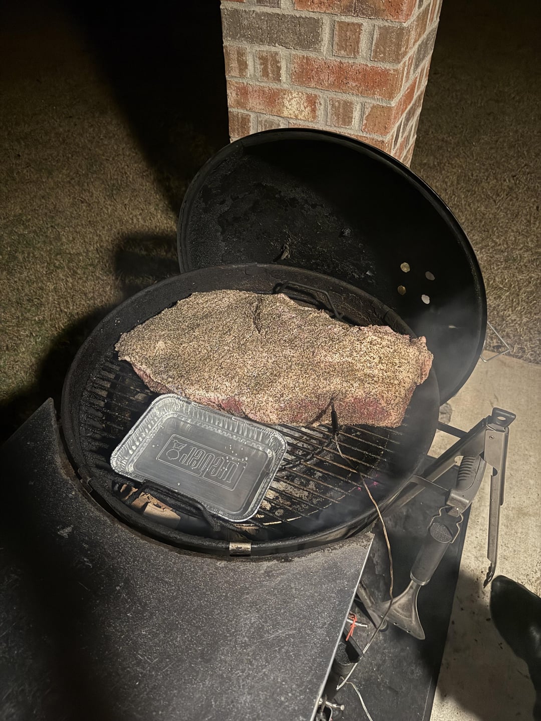 Smoked this 18.26lb brisket on my Weber kettle for Christmas dinner. Did a 2×2 snake using B&B competition briquettes with a few chunks of pecan wood. Total cook time was about 13.5hrs. by jkalber87 3 Comments bt24drexel 10 months ago If it fits, it smokes. Nice work! FederalMHope 10 months ago How’s the rub? nonnativetexan 10 months ago What’s that side dish on the counter back there?Write A CommentYou must be logged in to post a comment.
