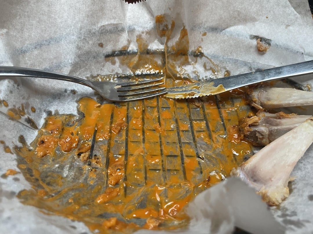 First time eating wings? The paper helps with the grease. I’m more concerned why you were using a fork and knife.