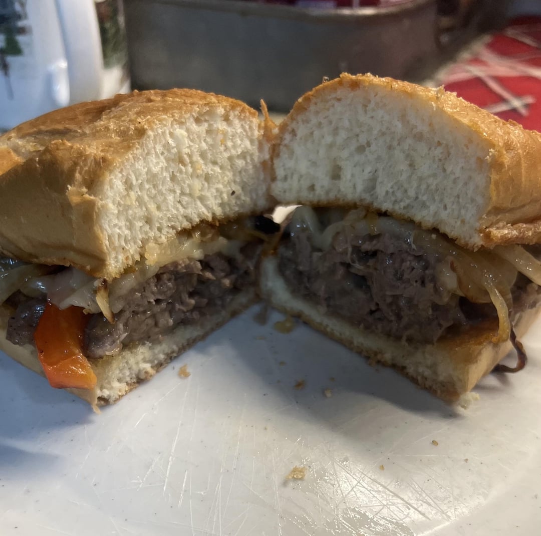 Dyldawg101 10 months ago Hey, that’s pretty much the same way we make ours. Thin sliced beef, diced veggies, provolone and everything. Nice one.