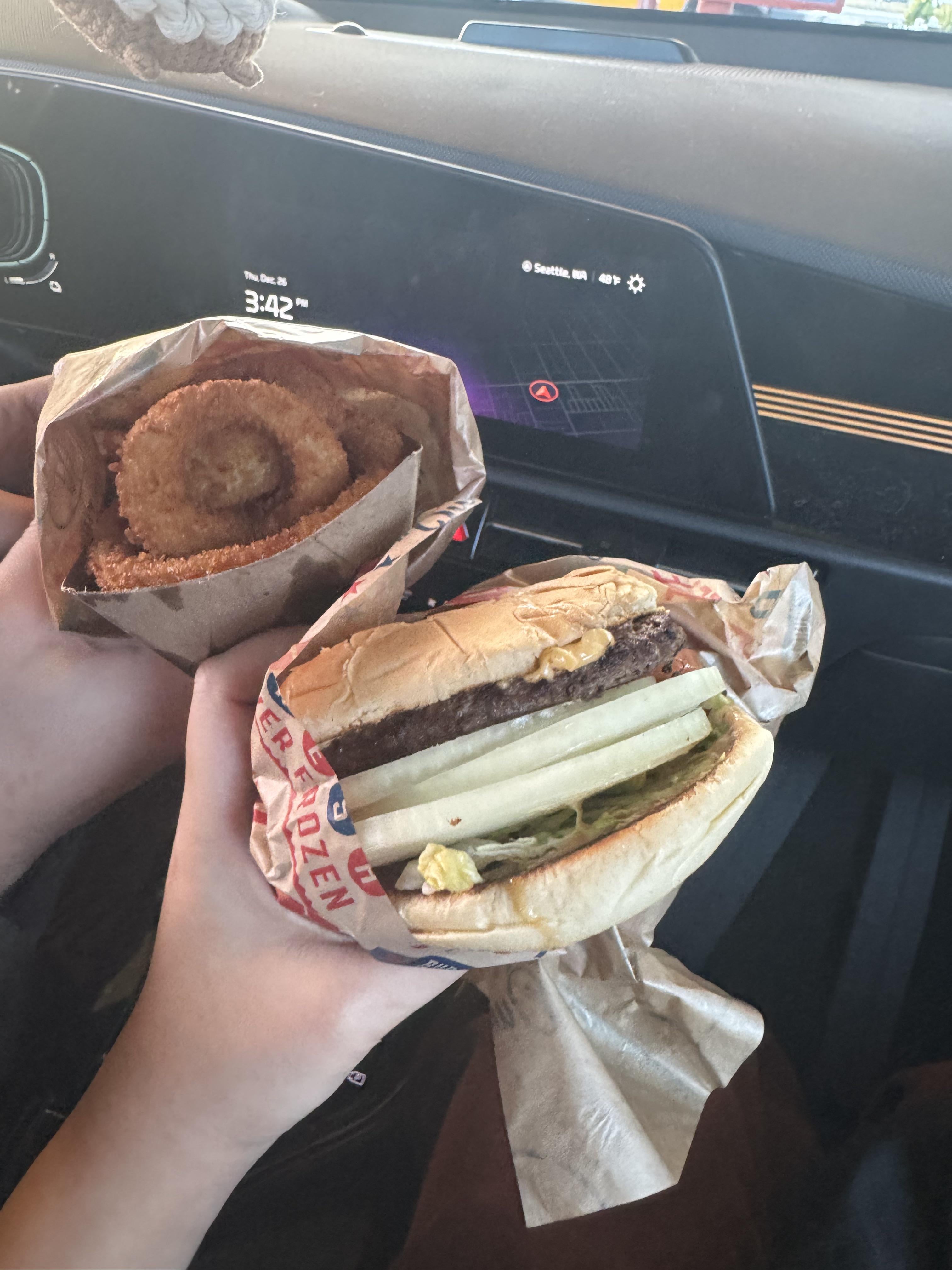 I just had this same meal Xmas eve! Burgermaster with both raw and carmelized onions, and a side onion rings with boom boom sauce. And their seasonal candy cane shake 😍