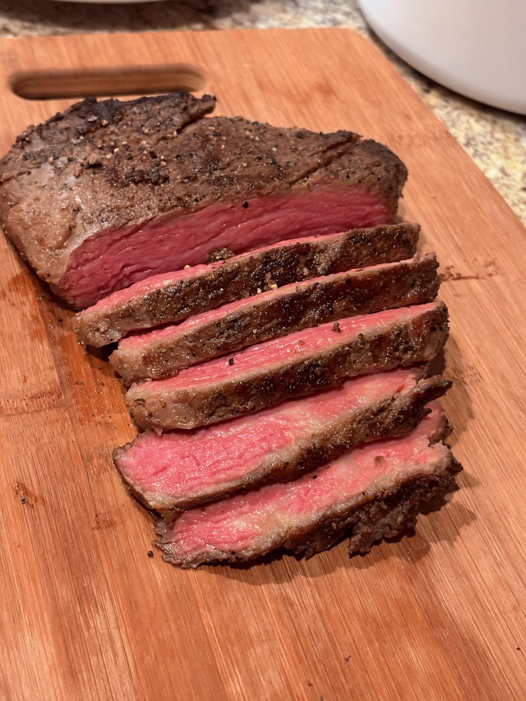 I think the grain on a tri-tip runs 2 different directions depending on which end (wide end or the point). Looks good though!