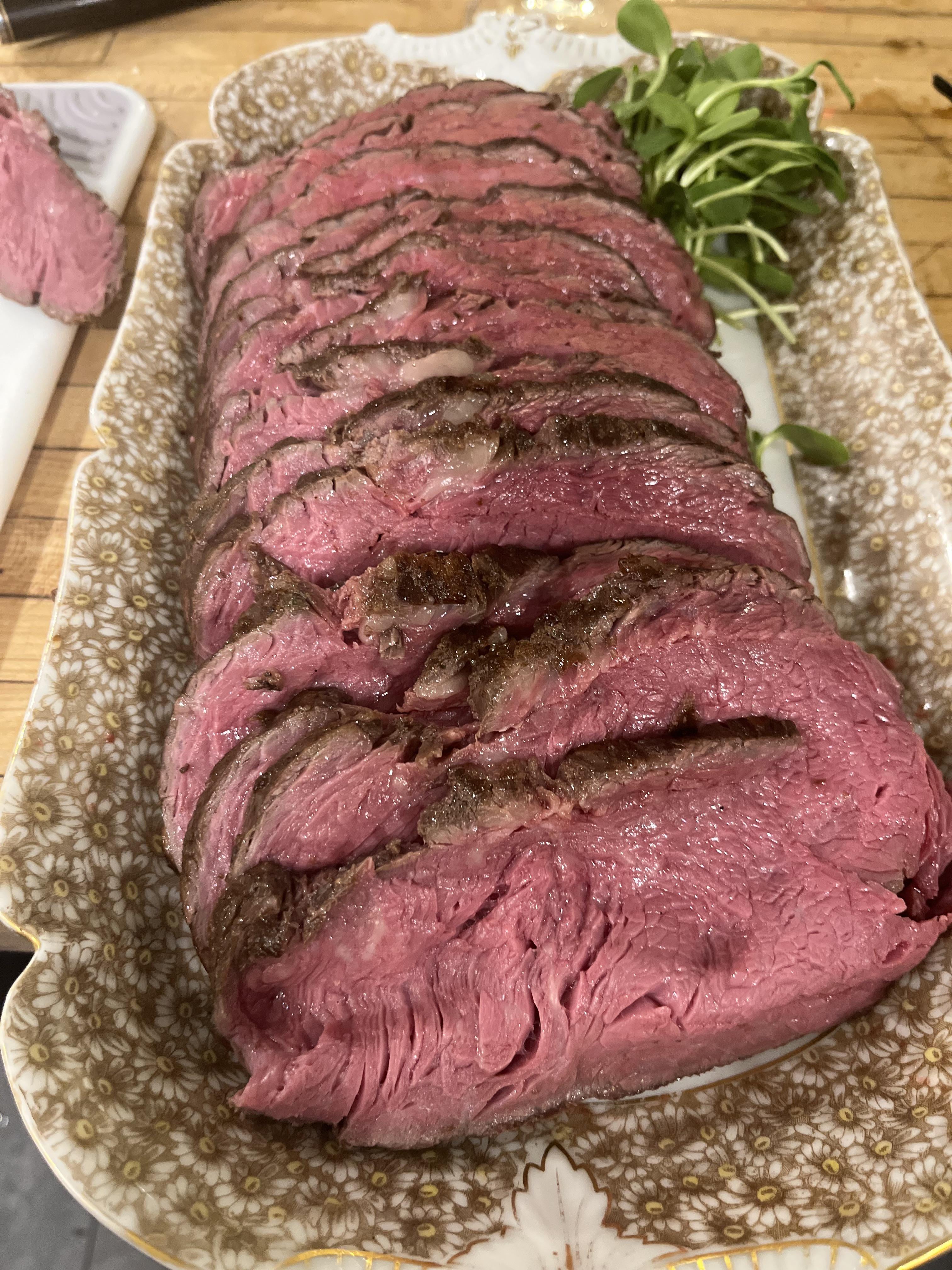 Took it apart cleaned out the silver skin, extra fat and meat glued it. Seared then cooked @130F for 8 hours with a final spice crust and sear. Been doing it this year for years and is always end to end perfection.