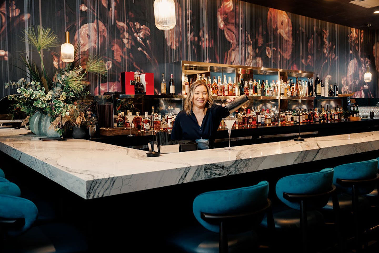 Bold florals, intricate walnut woodwork and dramatic pendants add opulence to Boketto at the Shops at West End in St. Louis Park. (Jeremy Lee Photography/Provided)