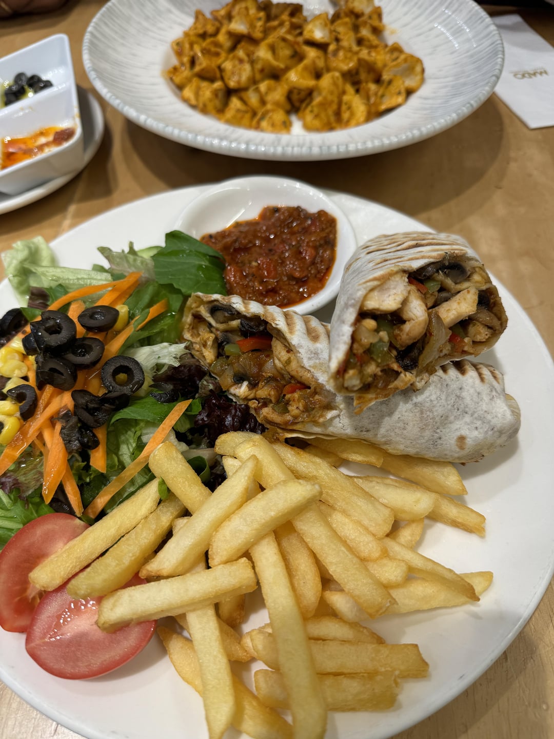 chicken wrap calories? with grilled chicken breast, sautéed mushrooms, peppers, and onion (excluding the sides)by eepygal 1 Comment stevenbellomy 1 year ago Depends on ingredients, should be around 250-350 caloriesWrite A CommentYou must be logged in to post a comment.
