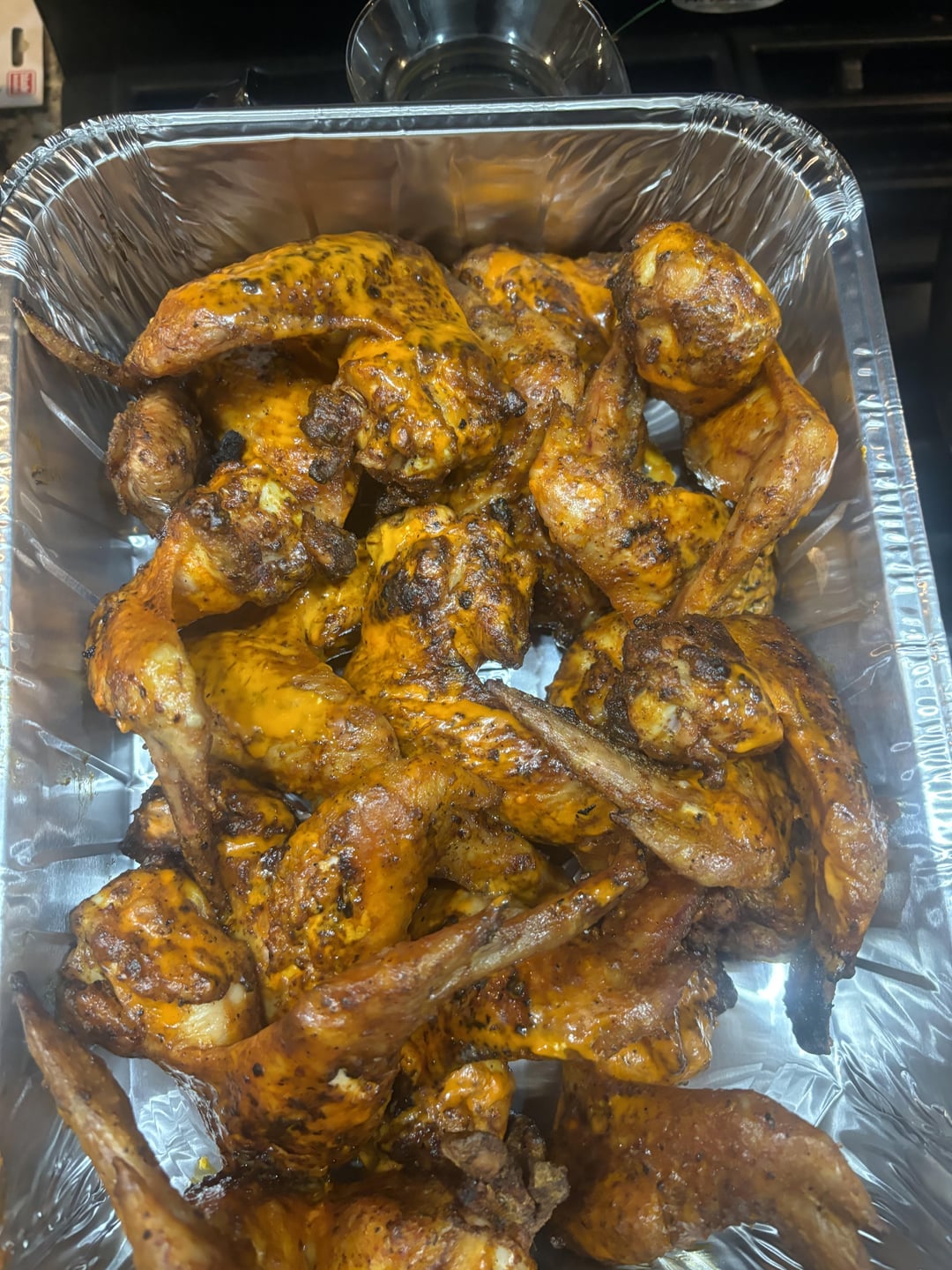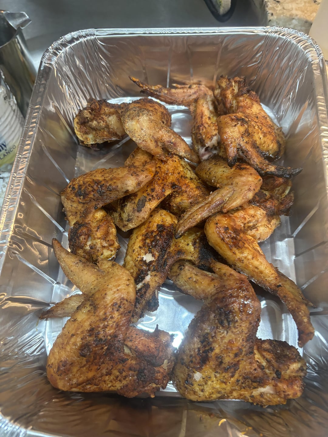 Onionman775 9 months ago Half store bought buffalo and half dry rub. Seasoning is just slap ya mammas hot blend and a bit of cornstarch.