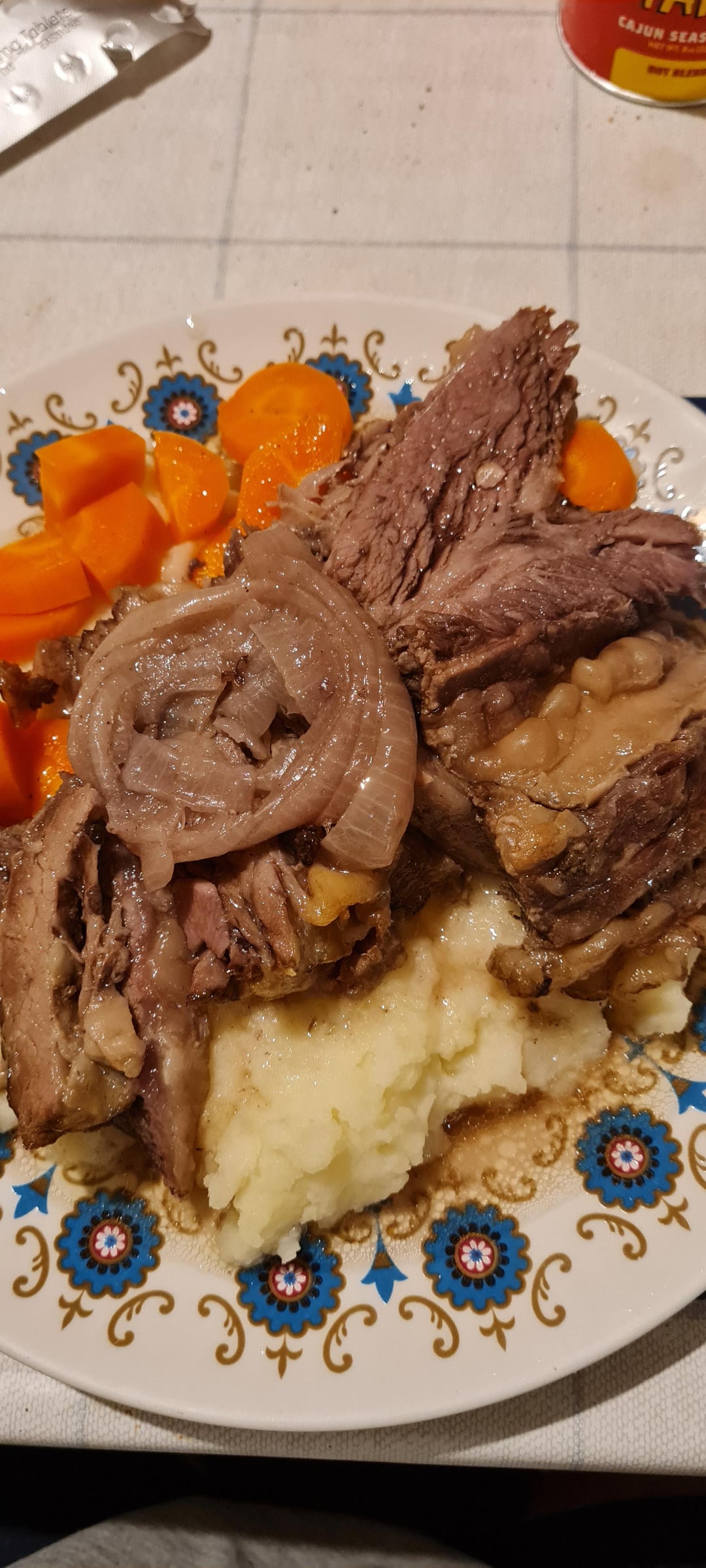 Beef short ribs slow roast over onions, garlic and red wine. Served with lumpy mash and carrots. by Bumblebeard63 Write A CommentYou must be logged in to post a comment.
