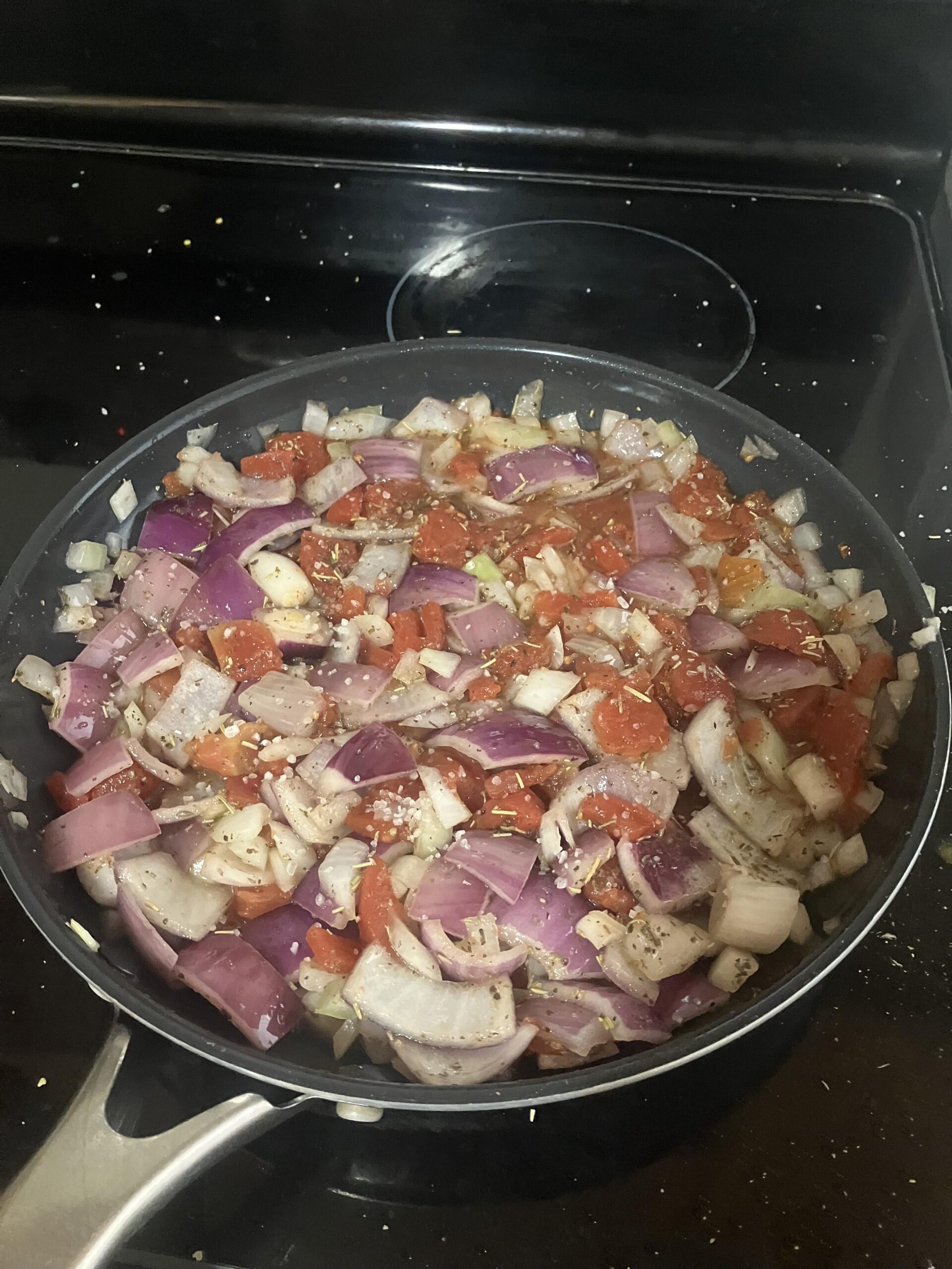 Thought you all might like my stew. Very simple, white and red onions, diced tomatoes, misc Italian herbs, olive oil, kosher salt, and lime juice. To die for.