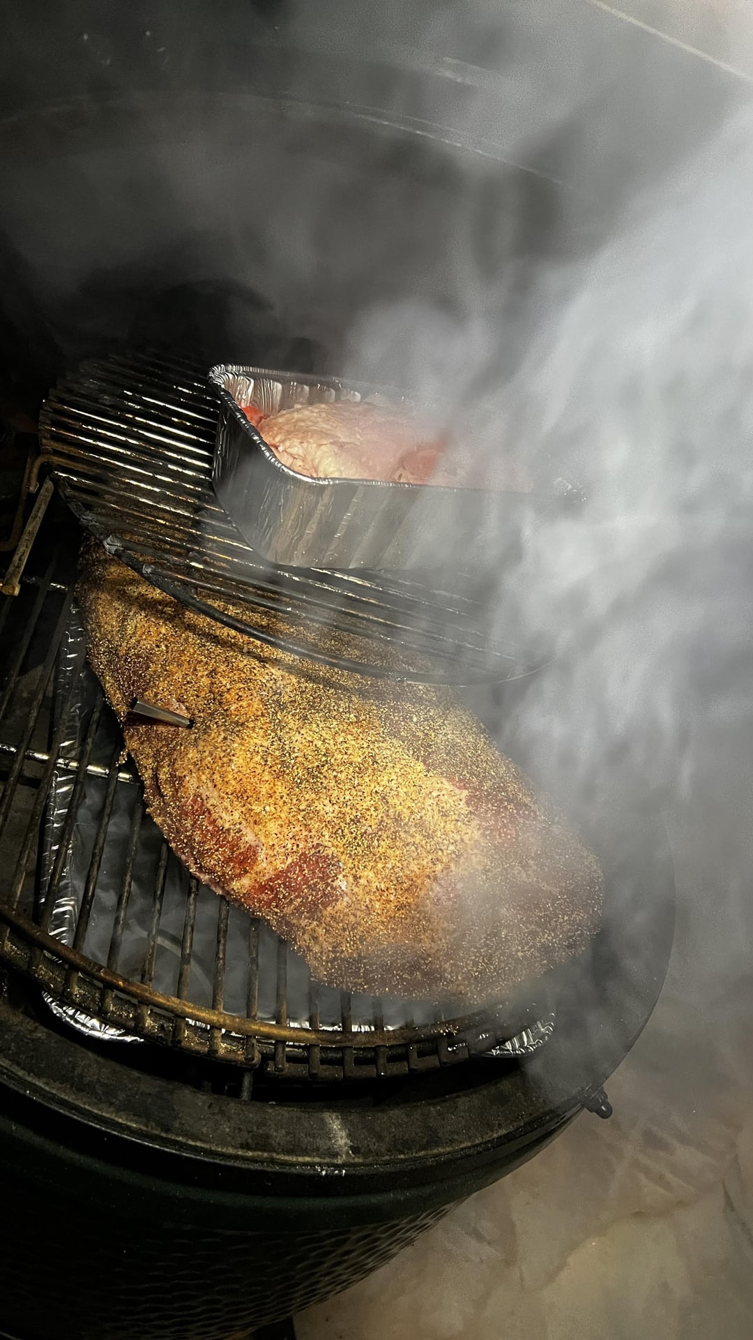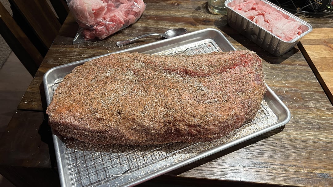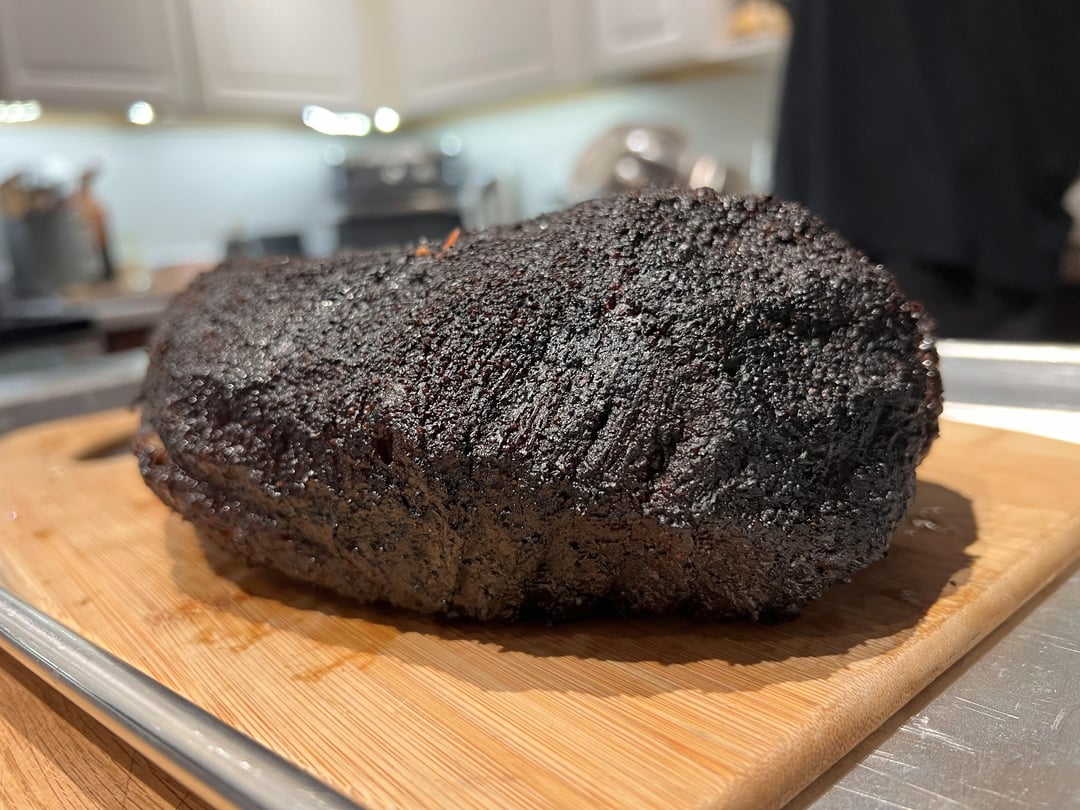 Put it on around 9:30 PM last night, let it go overnight, wrapped around 179, pulled at 199 after it probed tender, rested until dinner. Total time on smoker around 16 hours. Really nice bark. Really happy with it considering it‘s my first brisket on the BGE and second overall.