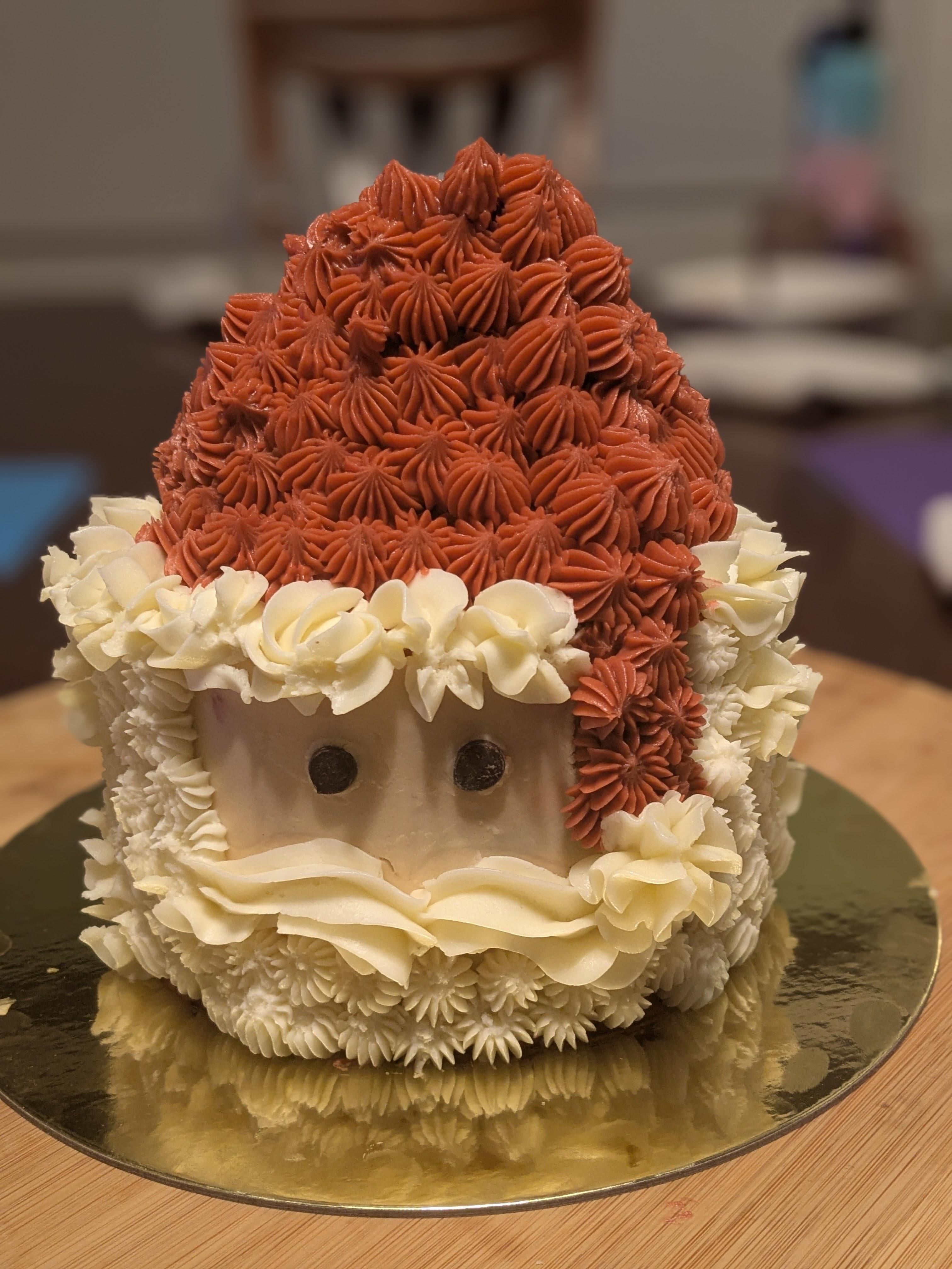 That’s so cute! Please tell me though that’s not just a mountain of buttercream on top for the hat and there’s cake there too?