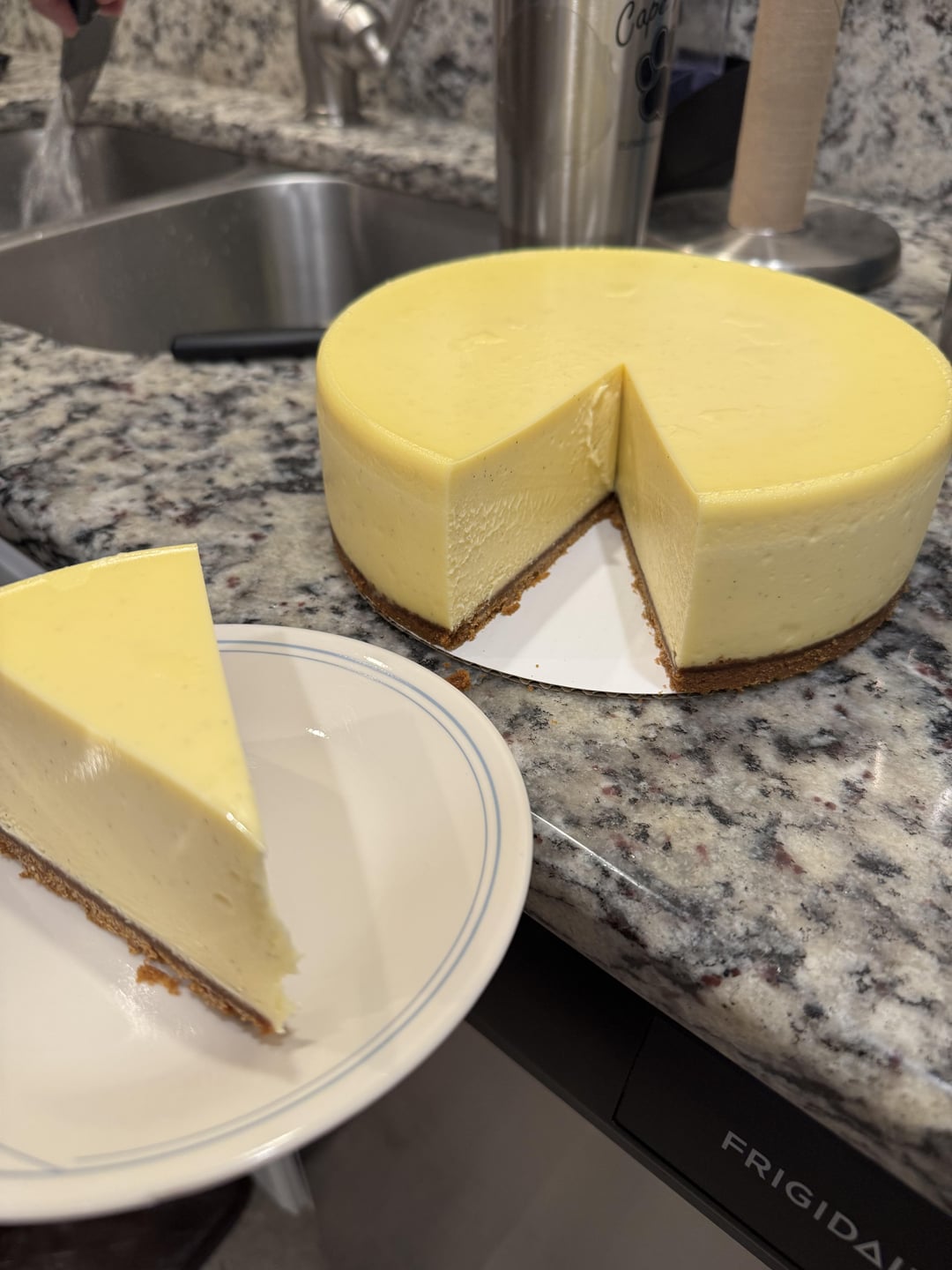That looks so perfect! I or my wife have yet to make a cheesecake that hasn’t had some sort of crack. This doesn’t even have any discoloration.