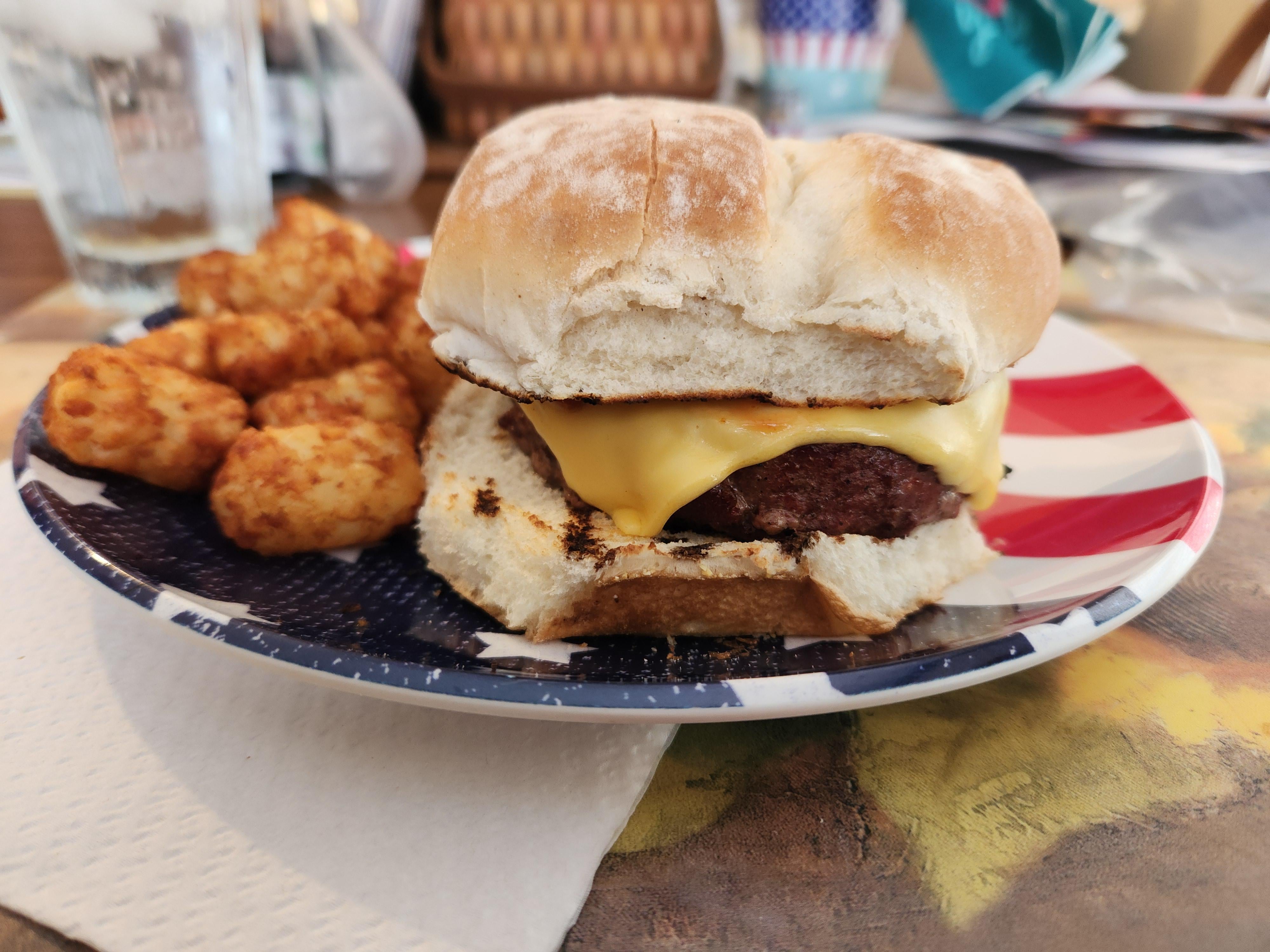 With a side of tater tots. We dodged the hail and tornadoes during yesterday's thunderstorms and today is a beautiful blue sky, perfect for grilling some burgers on the Kettle. Cheers! by JavaGeep 1 Comment bertmaster 10 months ago Looks great. Do you grind your own brisket?Write A CommentYou must be logged in to post a comment.
