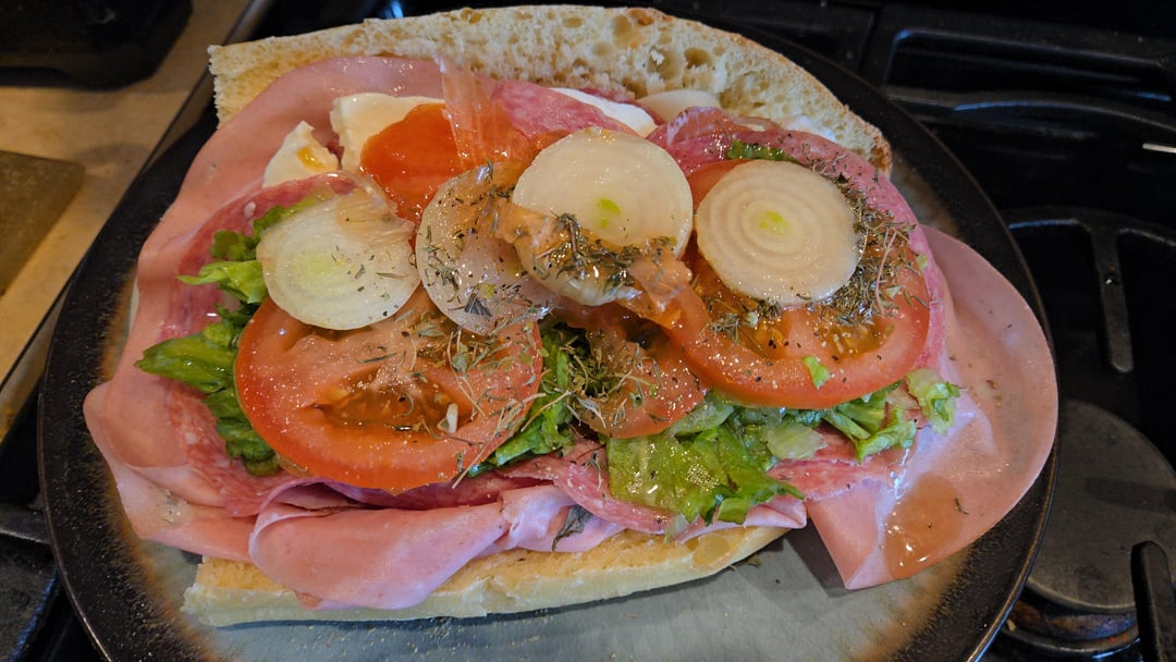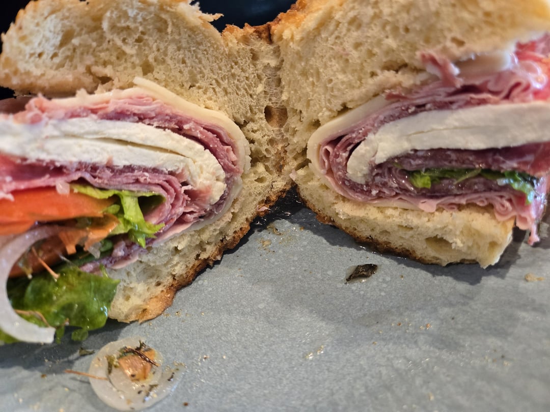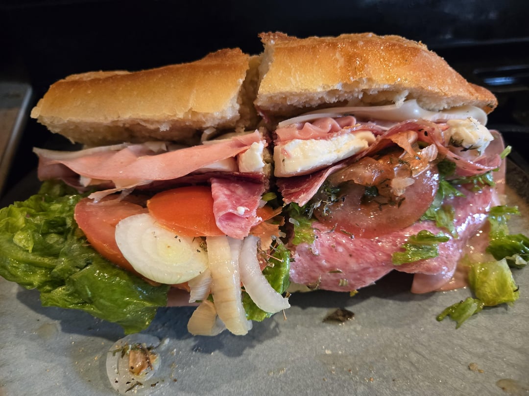Provolone, mortadella, sopresatta, fresh mozzarella, hot gabagool, salami lettuce tomatos onions oil vinegar salt pepper oregano mangiaby micheleferlisi 4 Comments merlingogringo 10 months ago Woke up this morning…https://youtu.be/S6eqqOhETeM?si=QjDBFxKVhibC2zM4 lotsofquestions2323 10 months ago Sounds and looks fantastic! They don’t even know how to make bread where I live. GraffyWood 10 months ago You are speaking my language! Good goin! Potatocrips423 10 months ago That’s an absolutely perfect sandwich! I’m so jealous.Write A CommentYou must be logged in to post a comment.
