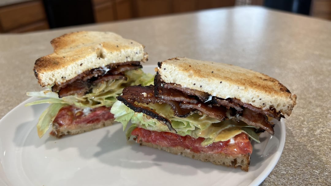 A proper BLT made with fresh in season tomatoes and quality bacon doesn’t need doctoring.