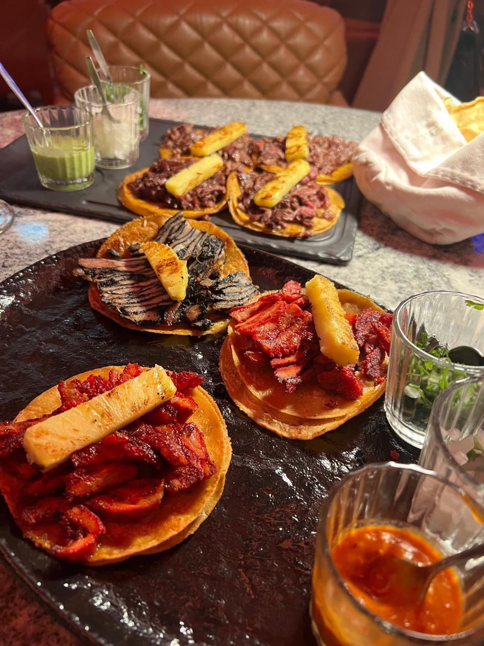 We ordered pork al pastor, black trompo, arrachera and bistec con tuetano. They were all to die for!by lukasdad Write A CommentYou must be logged in to post a comment.