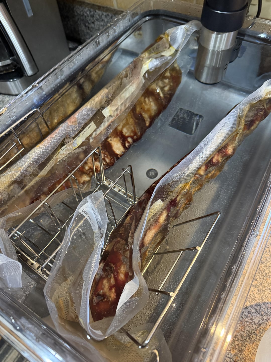 Cooked at 130 for about 14 hours, then 150 for about 4 hours.Straight to the pellet smoker at 230° for 2.5 hoursSome of the best baby backs I’ve ever had. Juicy, Smokey, tender, full of flavor, and the easiest ribs I’ve ever made 😂 by 50-Shades 5 Comments NarcanBob 1 year ago Upvote for doggoRibs look good as well, OP! Satorido 1 year ago Upvote. People gave me shit about my ribs being overdone. That bone looks awesome.… that’s what she said. ZomiZaGomez 1 year ago Looks great.. Lots of time to put into ribs though. IPerferSyurp 1 year ago Mmmmm plastics I_G84_ur_mom 1 year ago Dog: “this motha fucka didn’t leave me anything on that bone”Write A CommentYou must be logged in to post a comment.