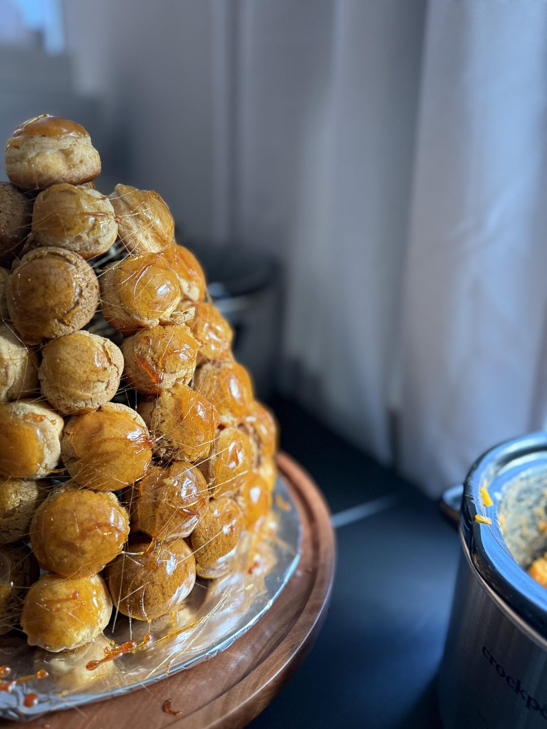 So. He makes a croquembouche. Brings it in. Says something along the lines of this is a croquembouche, it’s like cream puffs but better. Sets it on the counter and walks out 😭