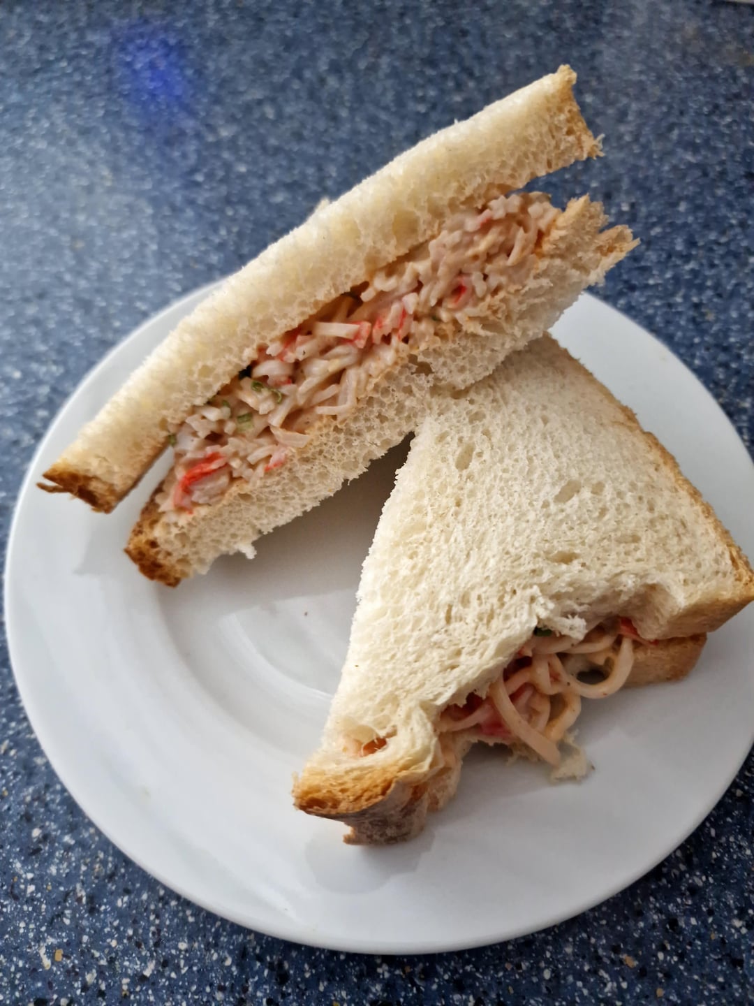 Had 2 packs of 'crabsticks' from Morrisons for £2, shredded a few of them and mixed with ketchup, tartar sauce and the tiniest drop of chilli sauce. Mix it, popped it in some bread and it tasted exactly like prawn cocktail sarnie! Cheap and tasty.