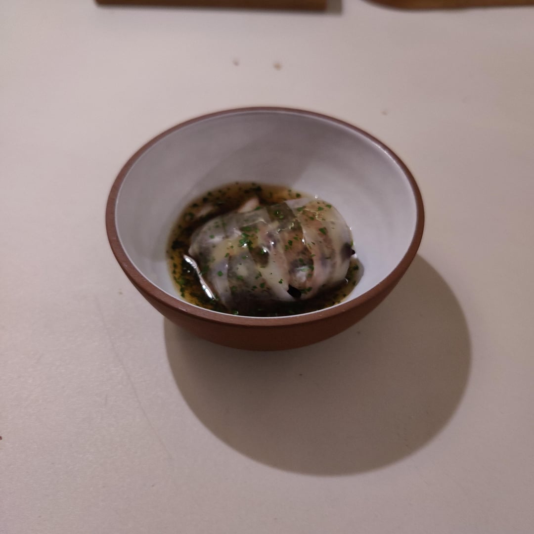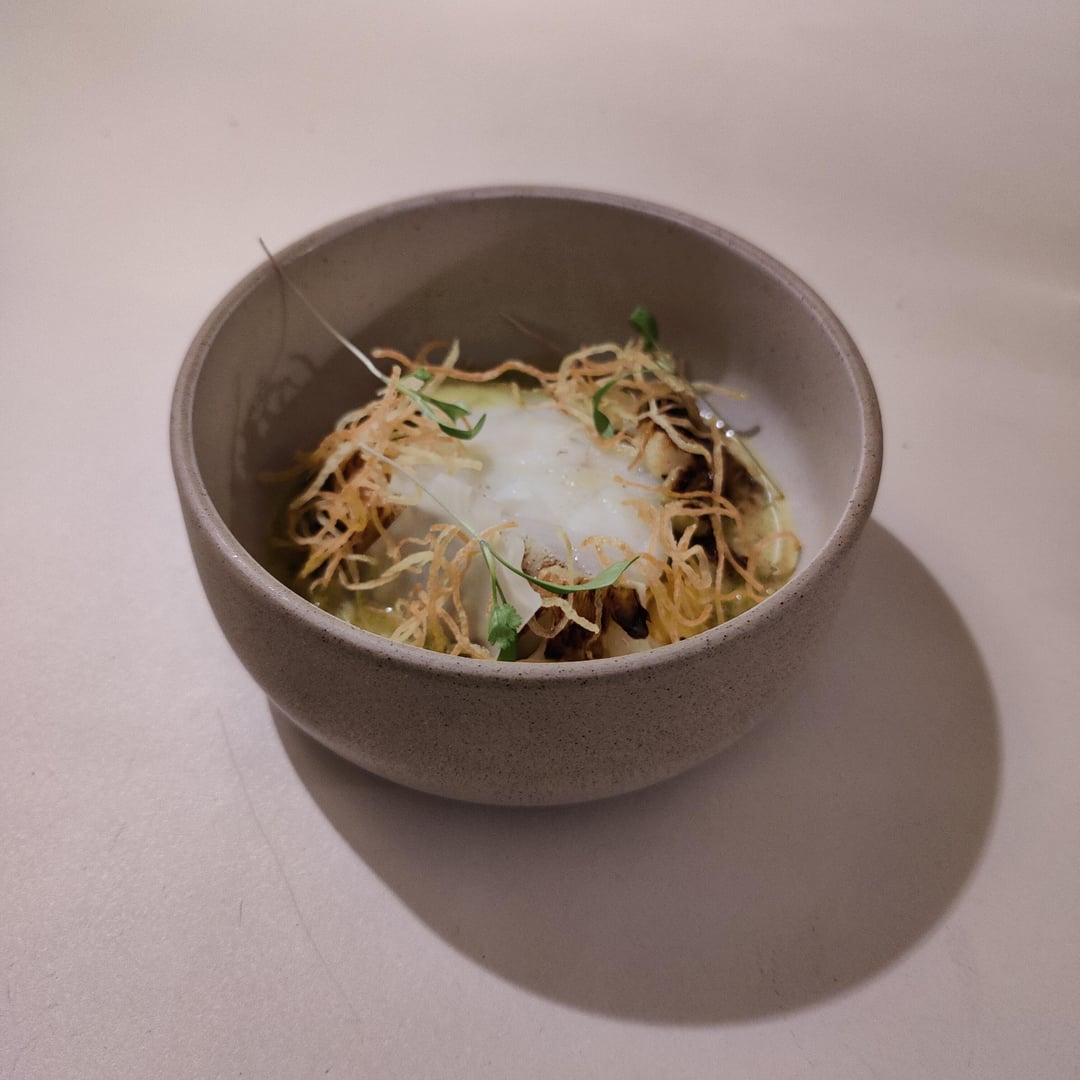 A fantastic mistake, glazed in zoy with a brilliant dittander and guanicale. The pork fat on top was excellent and it was a surprisingly meaty dish.