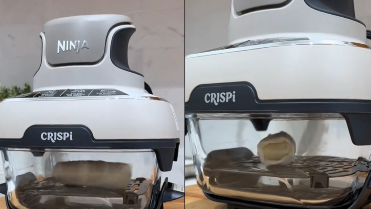 She appears to be using a ‘Ninja CRISPi 4-in-1 Portable Glass Air Fryer Cooking System’, described as having ‘the power of a full-size air fryer in the palm of your hand.’