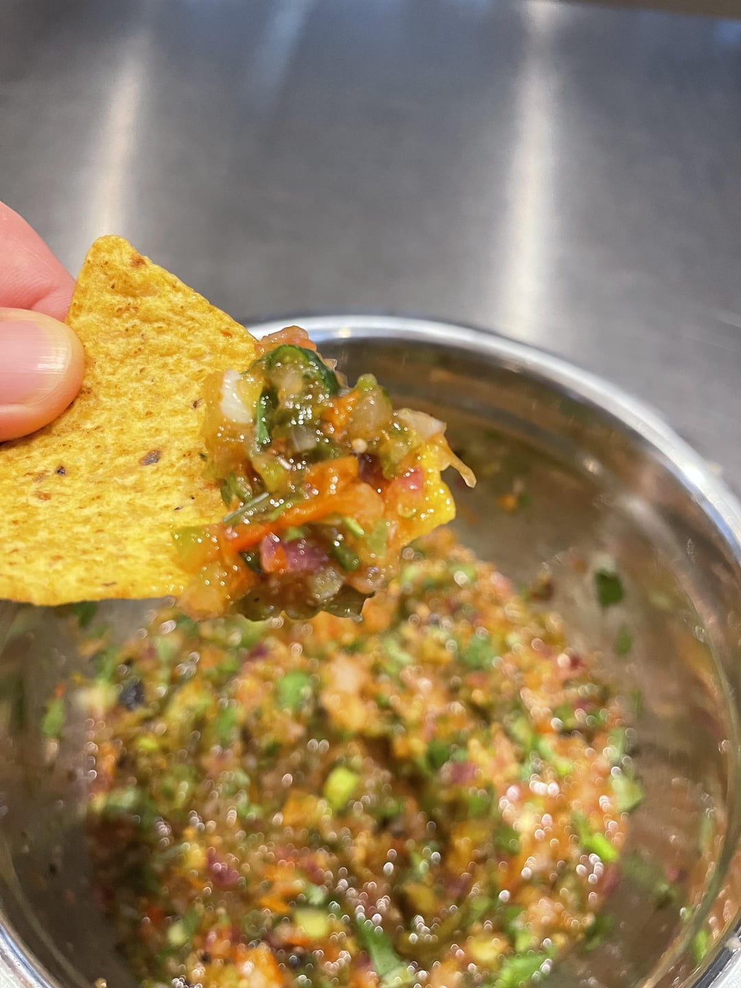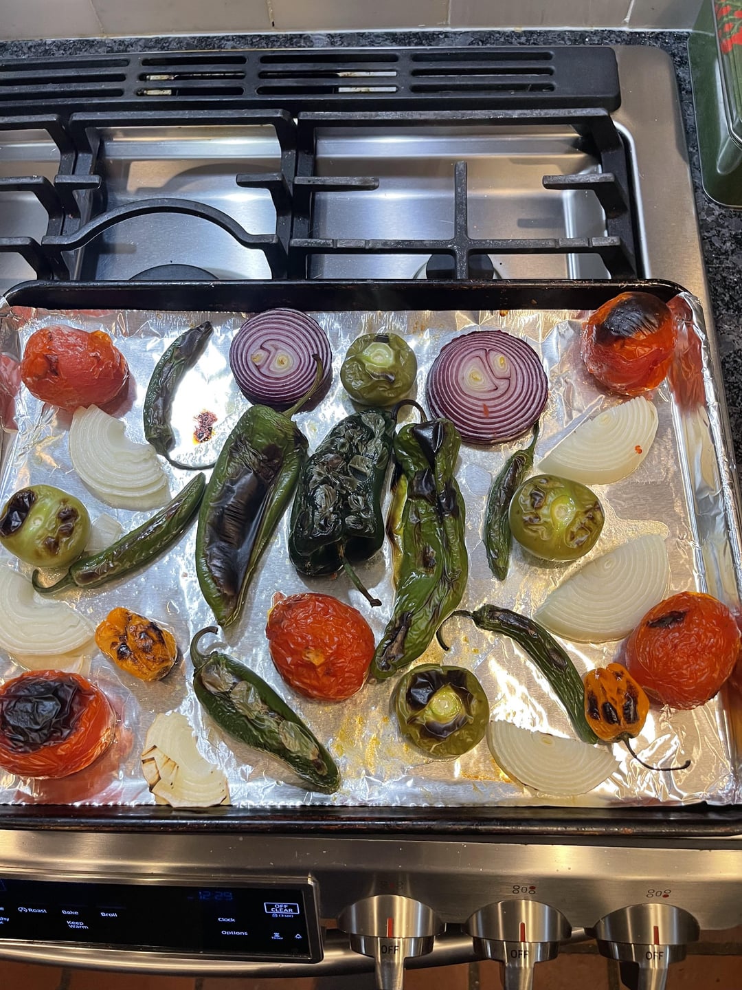 Broil veggies 10 min, flip half way through, remove pepper seeds, blend then add 1/4c diced cilantro, 3 green onions juice of 1/2 lime.by SlacksDavenport 1 Comment BurrrritoBoy 9 months ago Texture looks perfect.Write A CommentYou must be logged in to post a comment.